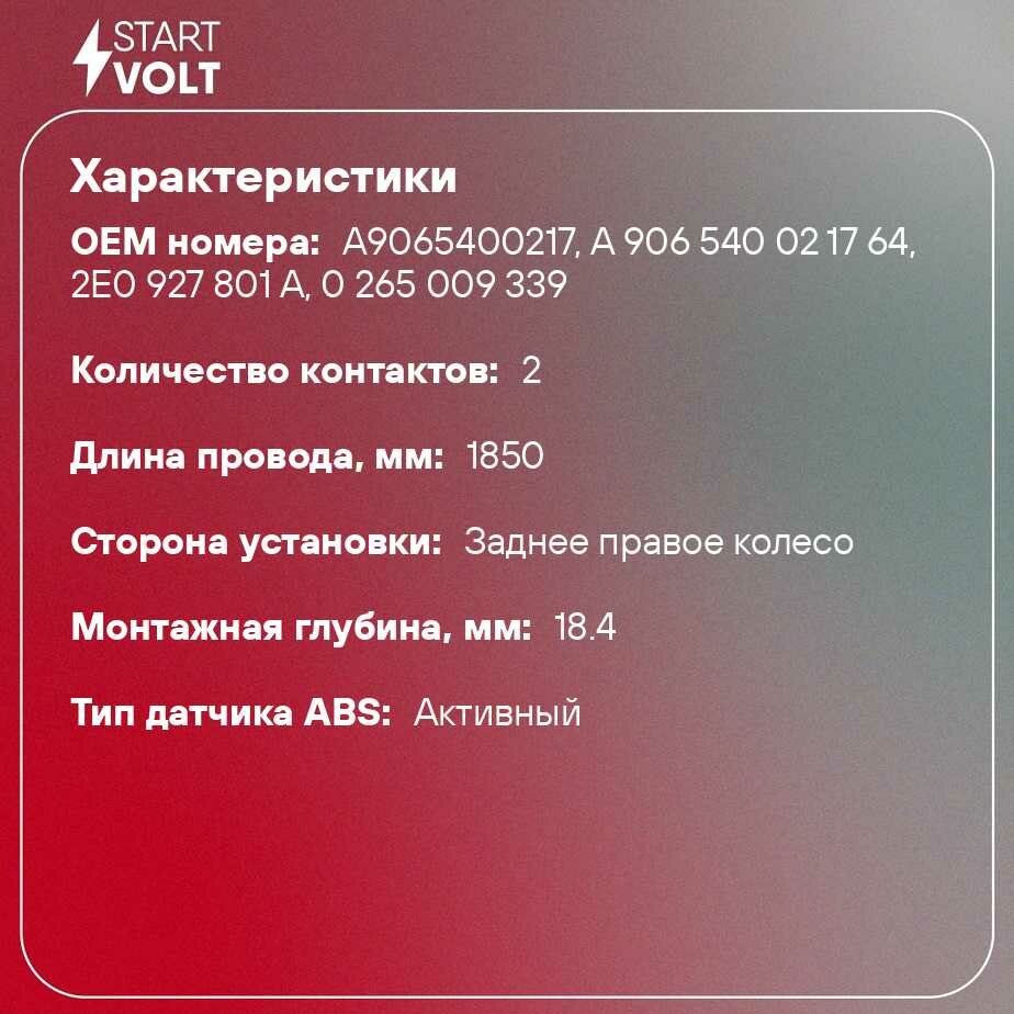 STARTVOLT Датчик ABS для Mercedes-Benz Sprinter (06-) задний правый кол. (VS-ABS 1582)