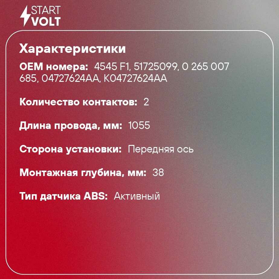 Датчик abs fiat ducato 2.3 d перед. Startvolt VSABS1680
