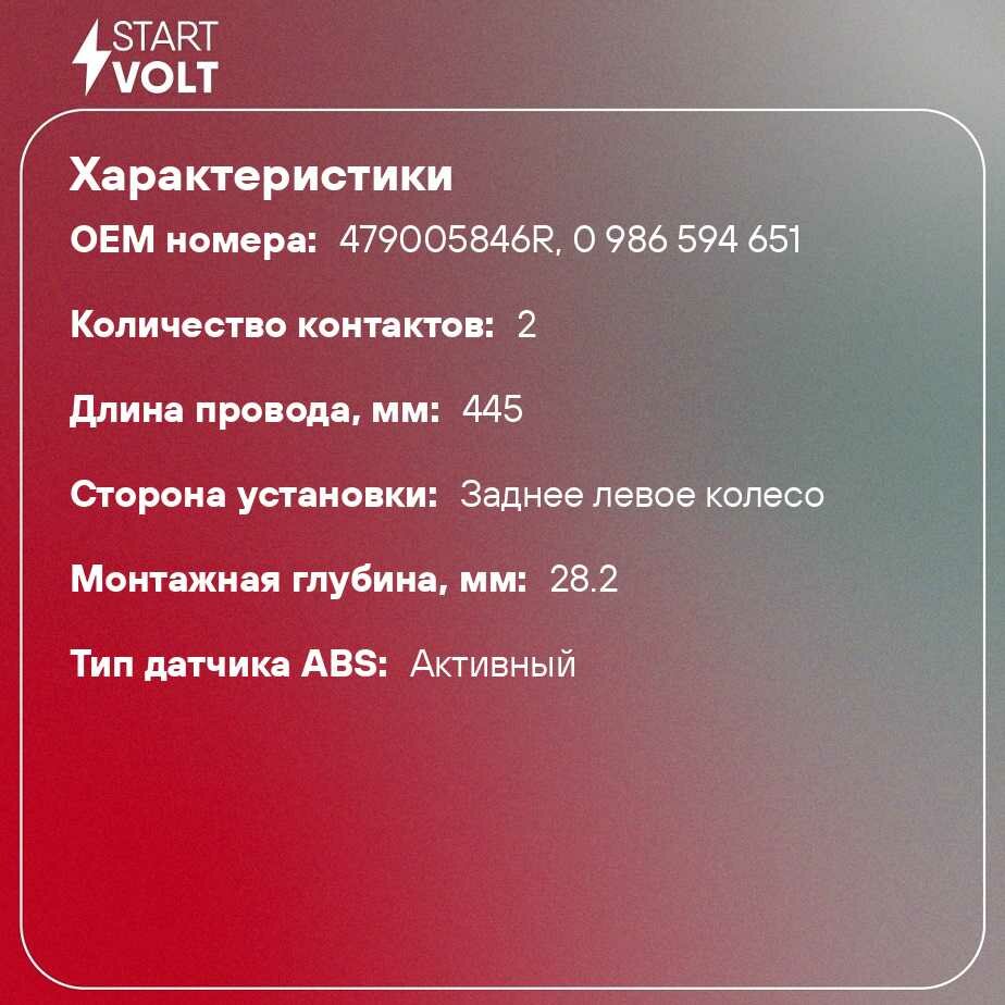Vsabs0905_датчик Abs! Задний Левый Renault Logan 12>/Sandero 14>, Lada Largus 12> STARTVOLT арт. VS-ABS 0905