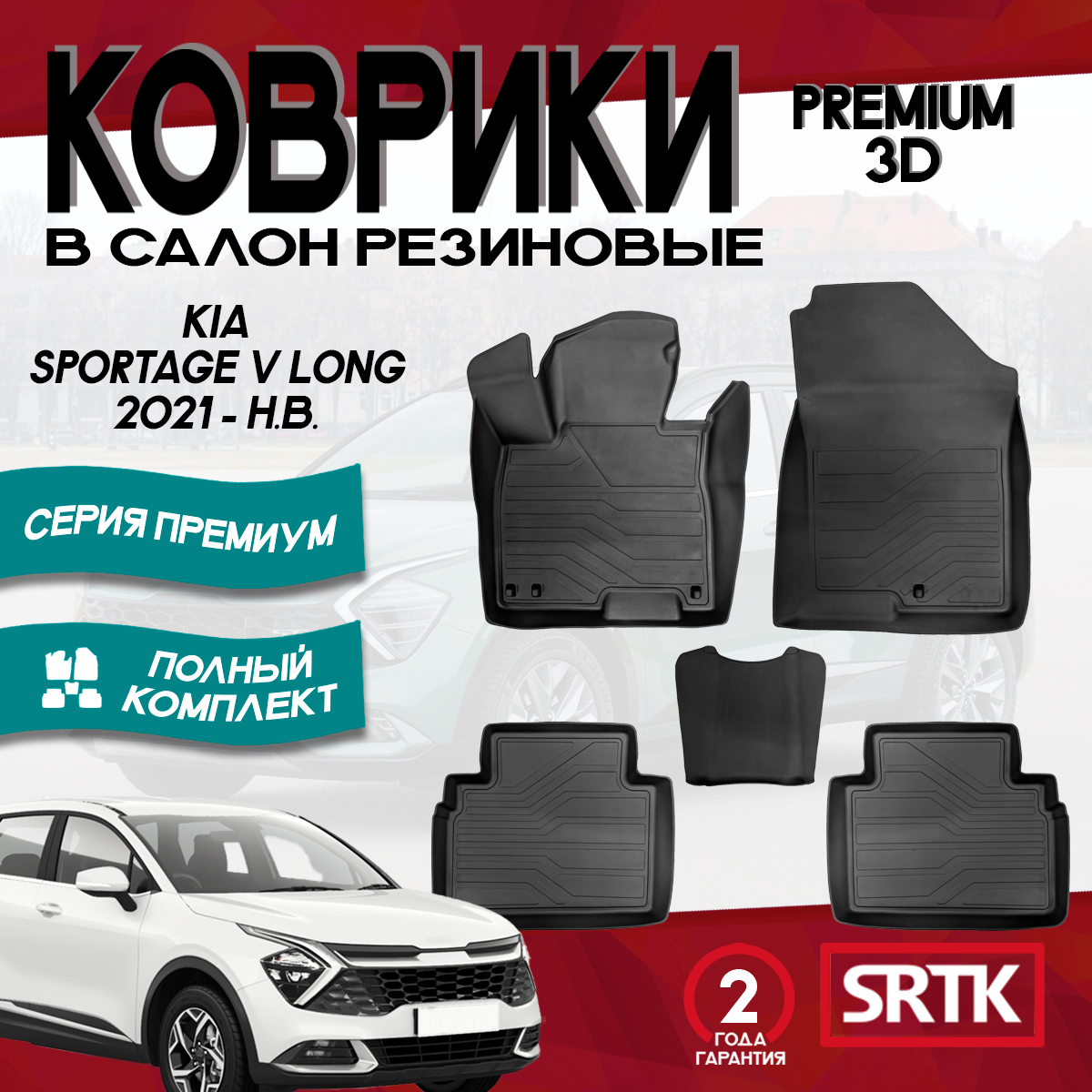 Коврики резиновые в салон 3D PREMIUM KIA Sportage V / Киа Спортаж 5 SRTK (2021-) (PR.KI.SPORT.21G.07X03)