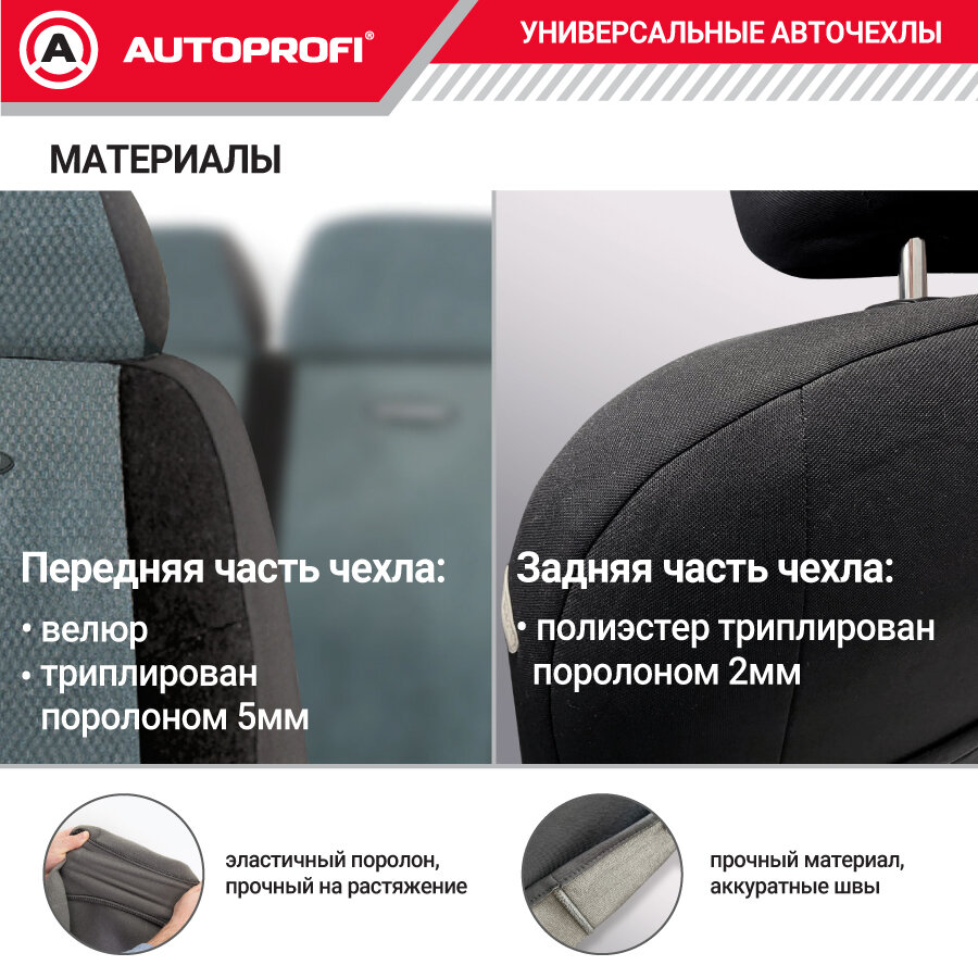 AUTOPROFI GAZ002BKGY GAZ-002 BK/GY_чехлы для сиденья! водит.+пассажир., велюр, чёрн./серый\ ГАЗель, Соболь, Валдай 1шт
