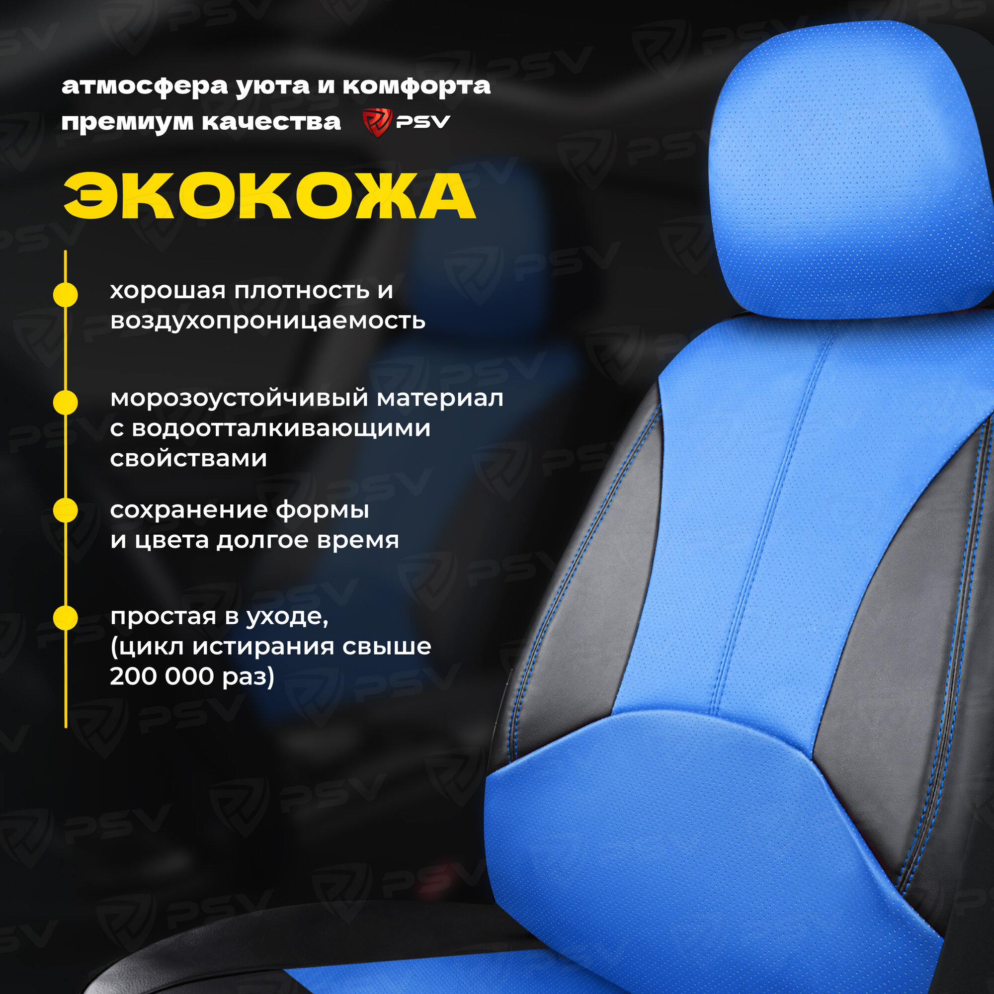 PSV 124615 Чехлы автомобильные универсальные эко-кожа черный "PSV" Imperial Next (синяя строчка)