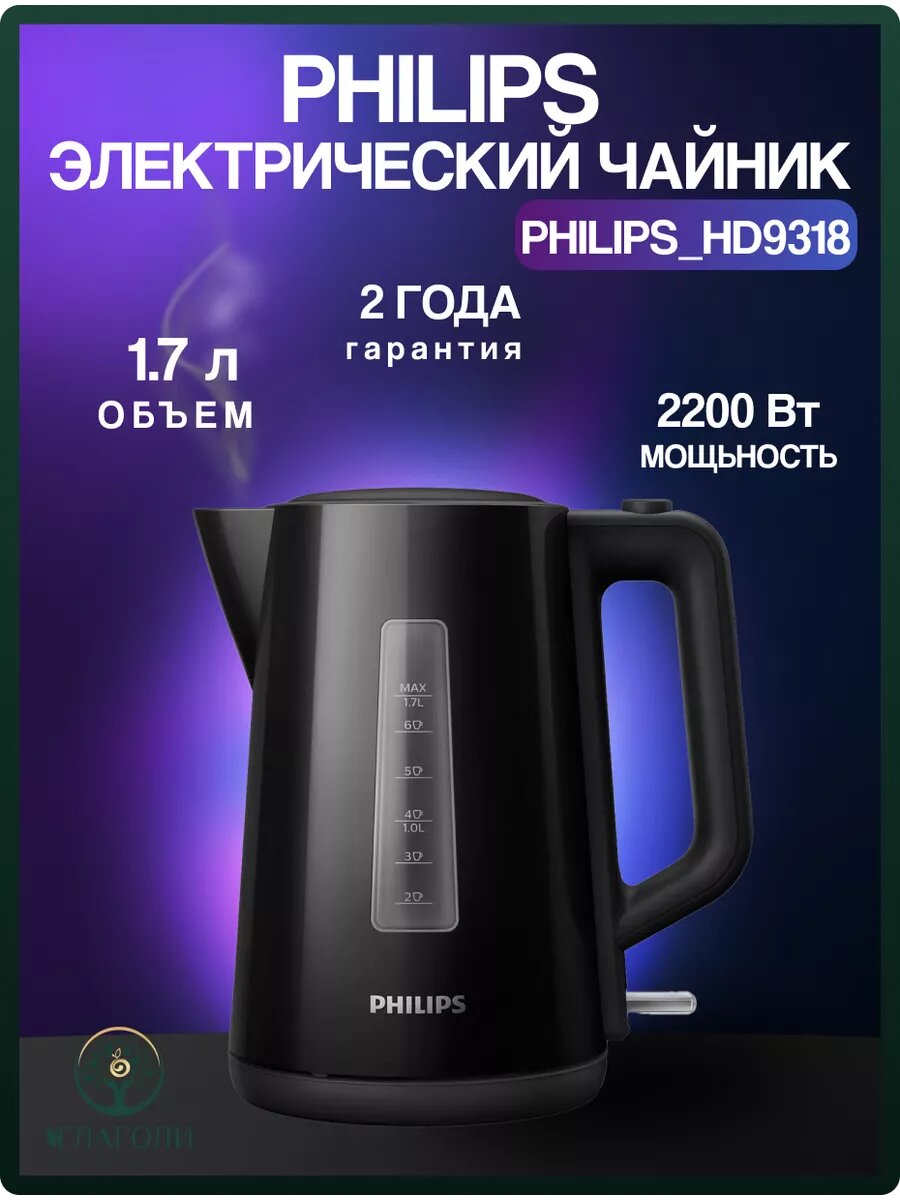 Купить Чайник Philips HD9318, 1,7 литра, черный, пластик, 220В, 2,2кВт, 360°