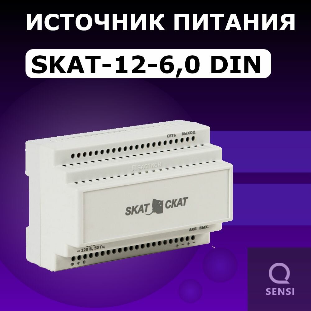 Бастион SKAT-12-6.0 DIN (скат ИБП-12/6-DIN) источник питания 12В 6А пластиковый корпус под DIN рейку 35 мм