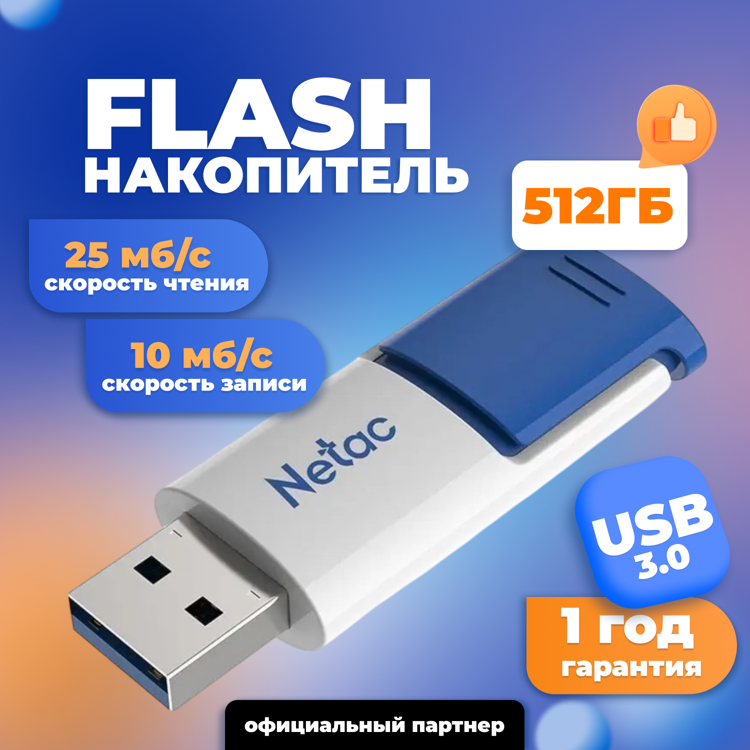 Флешка 512ГБ Netac USB 3.0 U182