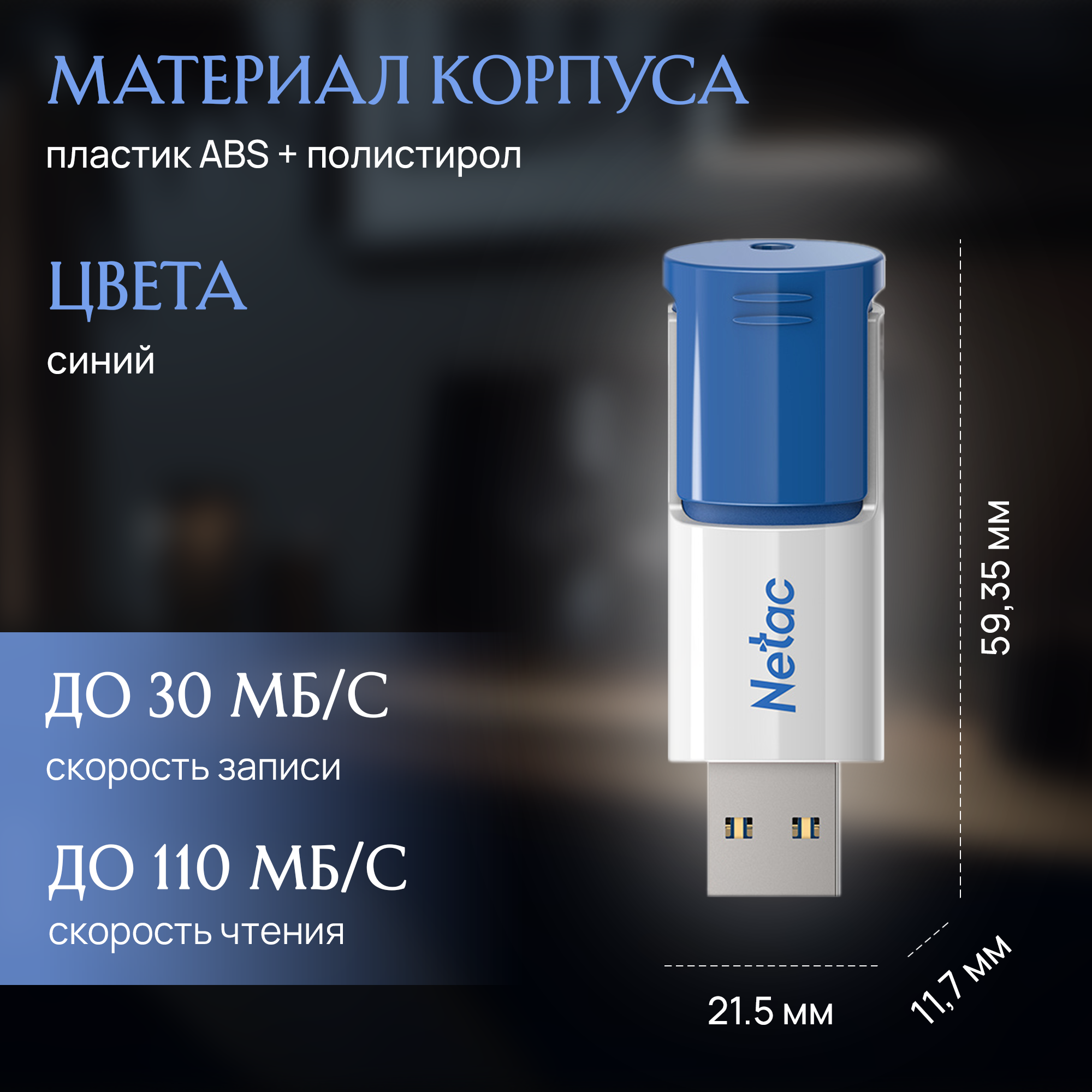 Флэш-память USB_128 GB Netac U182 , USB3.0, синий/белый