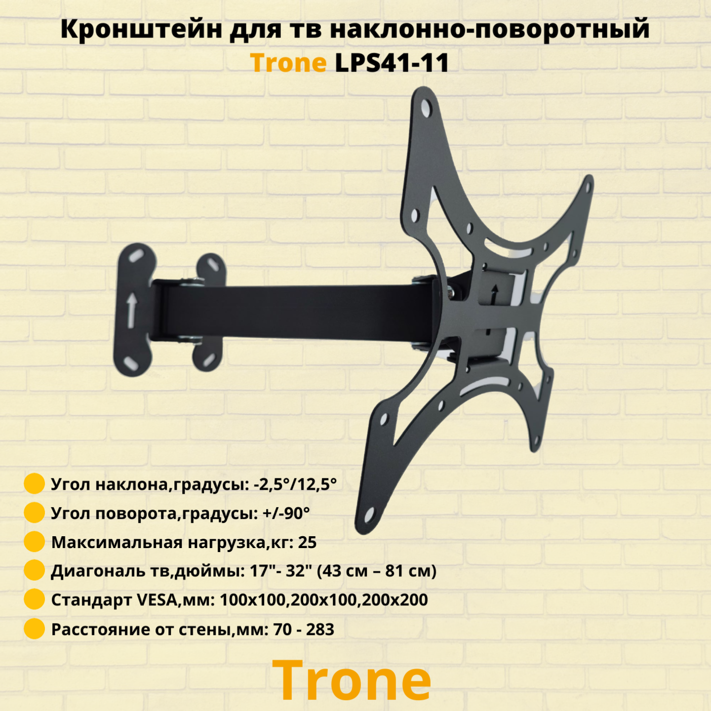 Кронштейн Trone LPS 41-11, для ТВ, наклонно-пов, 17"-32", до 25 кг, 70-283 мм, чёрный