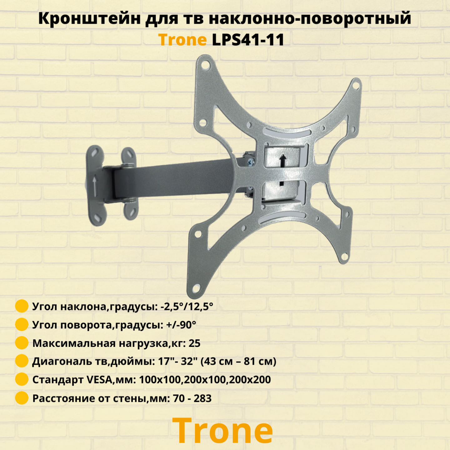 Кронштейн Trone LPS 41-11, для ТВ, наклонно-пов, 17"-32", до 25 кг, 70-283 мм, чёрный