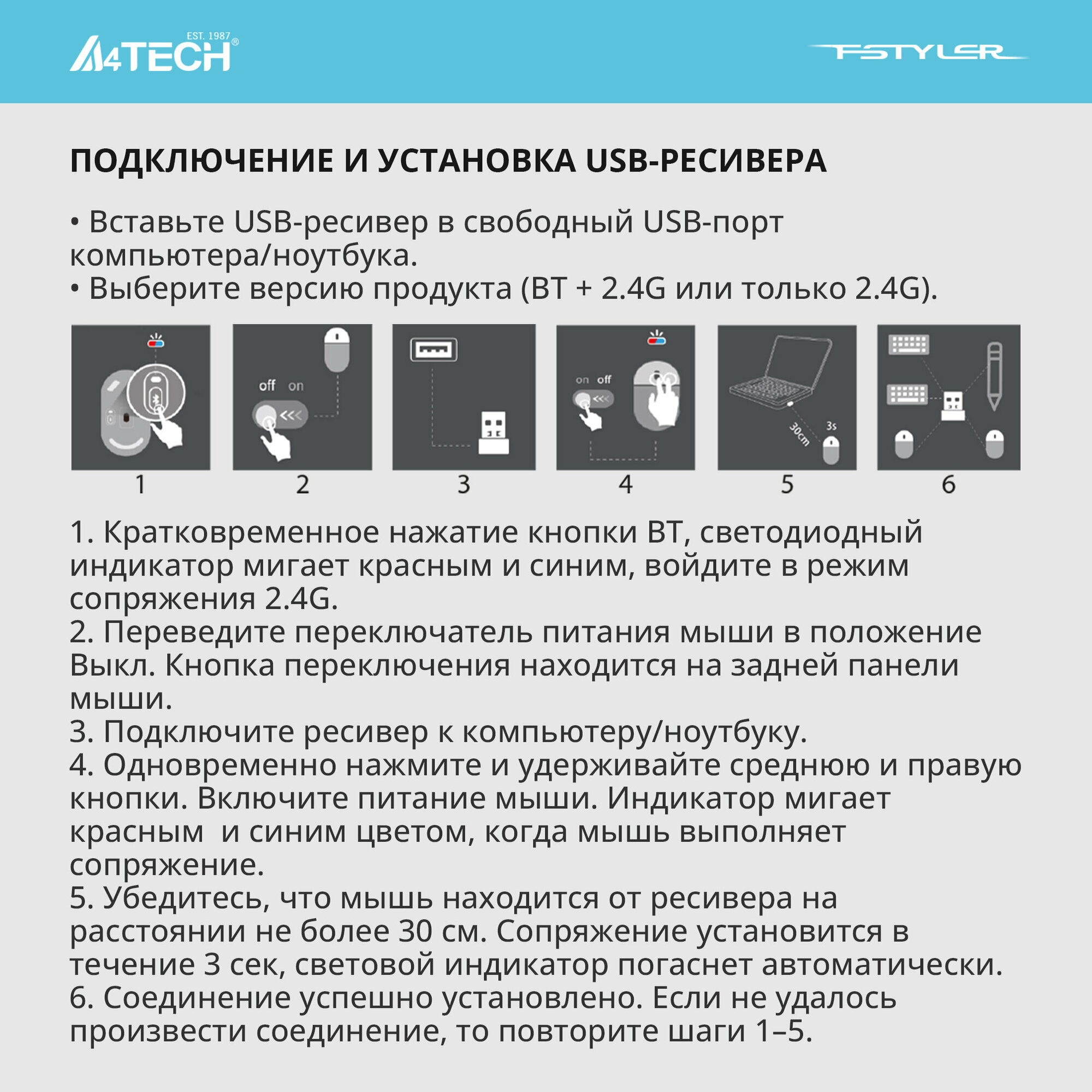 Беспроводная оптическая мышь A4Tech Fstyler FB35, 1200-1600-2000 DPI, 6 кнопок