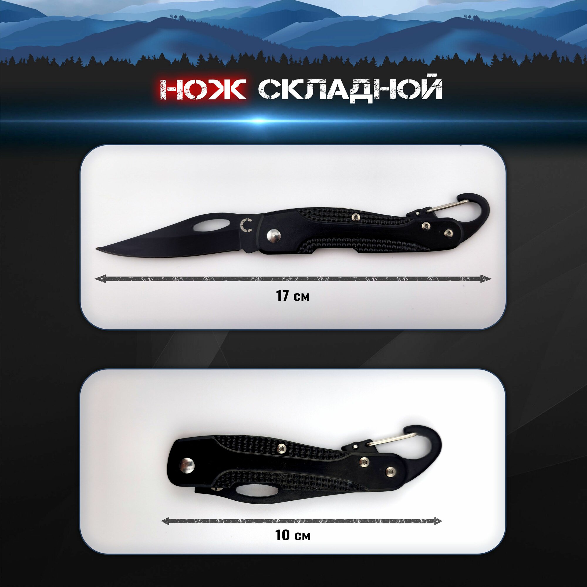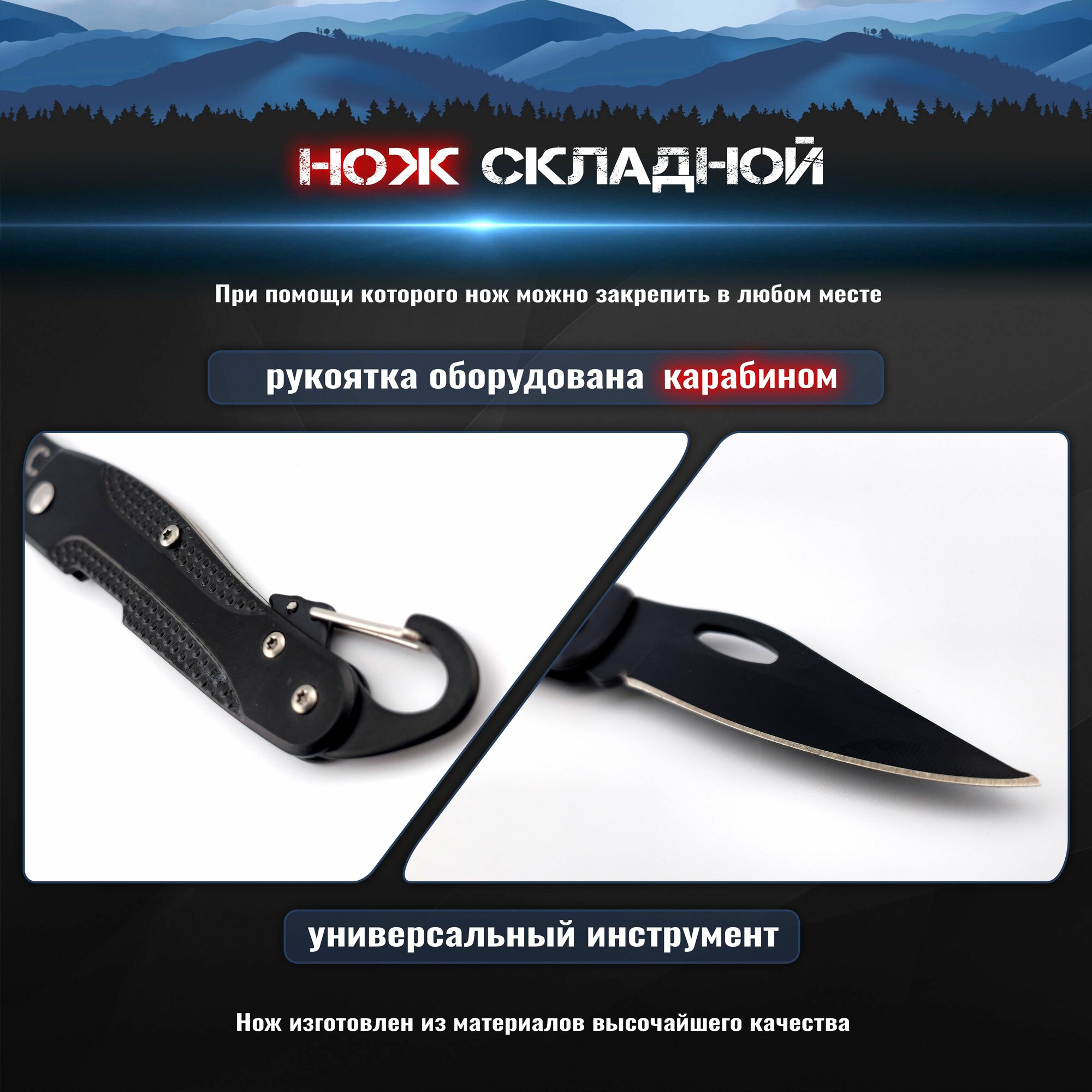 Нож туристический "следопыт", дл. клинка 70 мм, без фиксатора, с карабином, на блистере