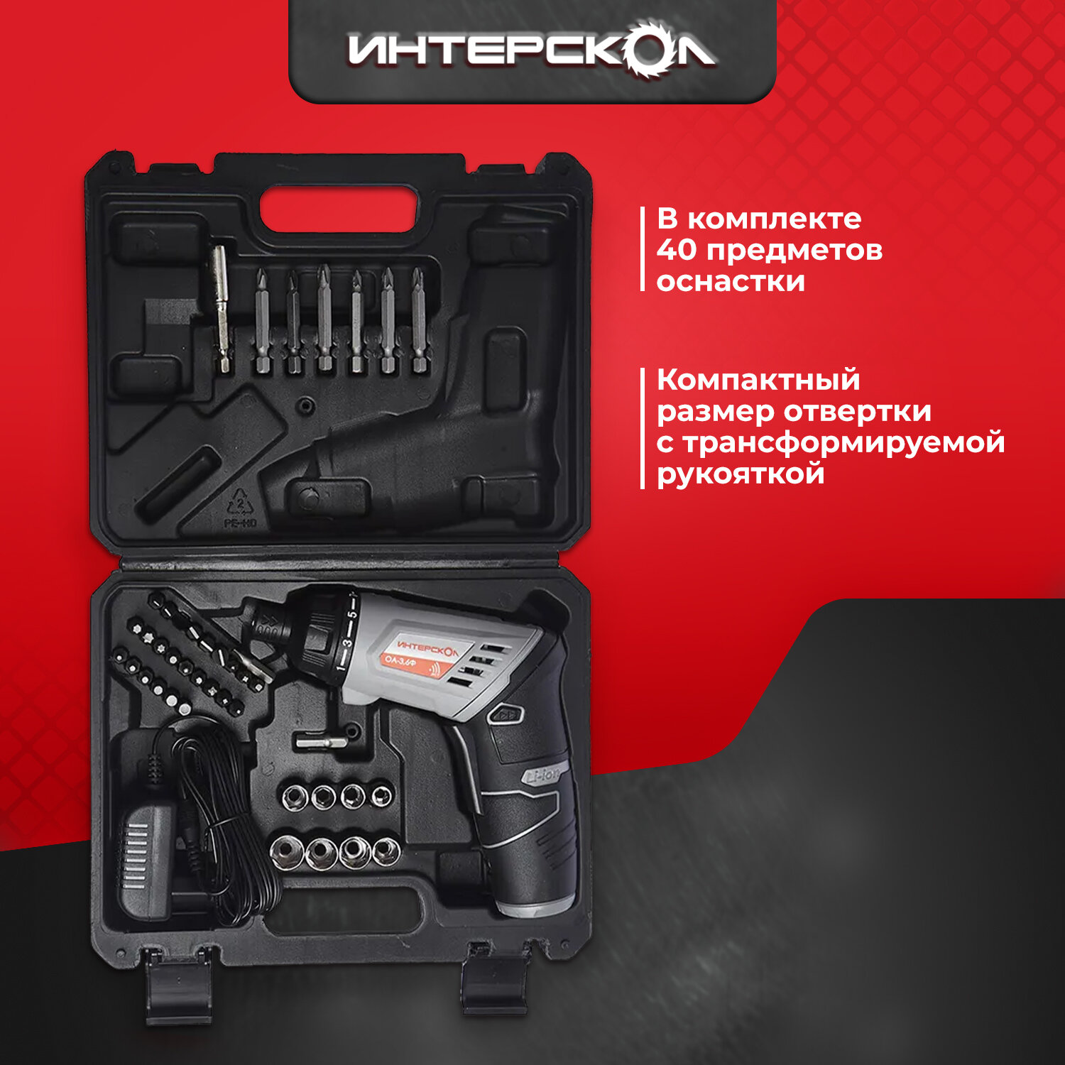 Аккумуляторная отвертка Интерскол ОА-3,6Ф кейс серый/черный/красный