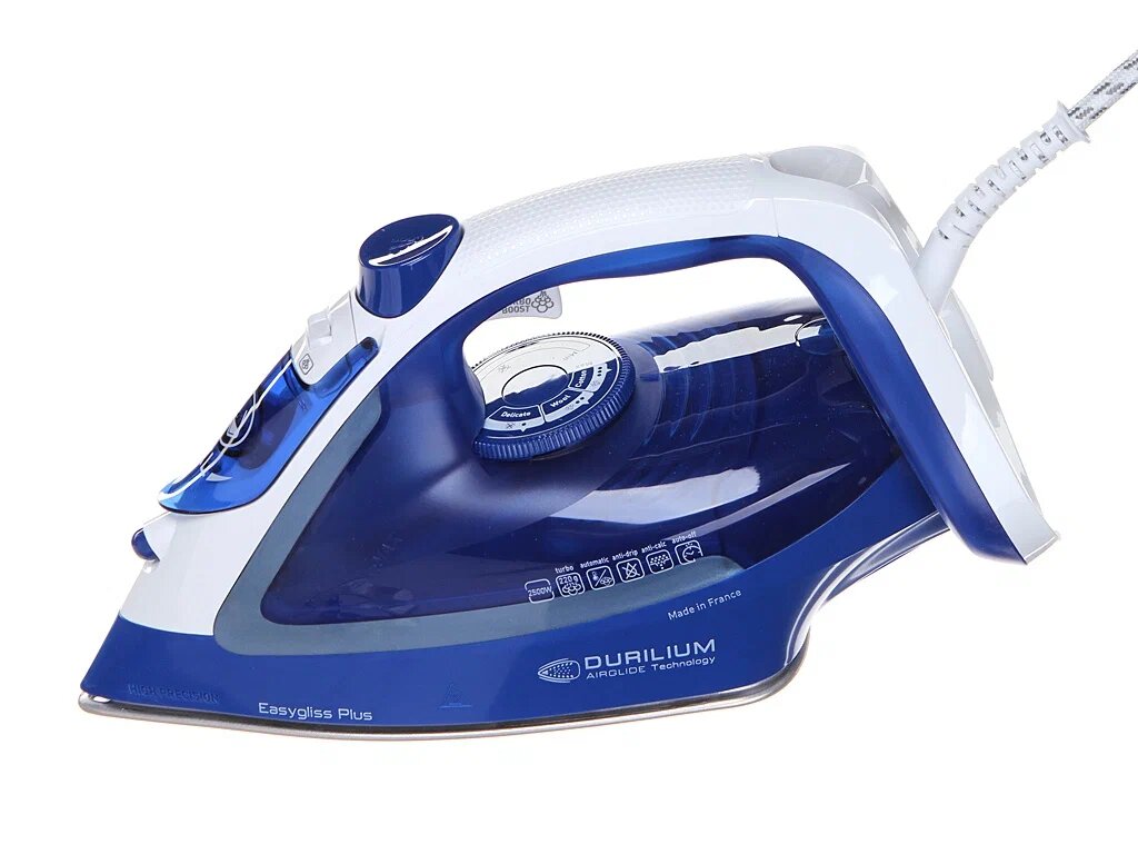 Утюг Tefal FV5735E0 синий/белый, мощность 2500Вт, подошва утюга Durilium Airglide, паровой удар 220г, емкость для воды 270мл, длина шнура 2м