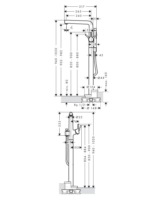 Talis S Смеситель для ванны однорычажный напольный, 72412000