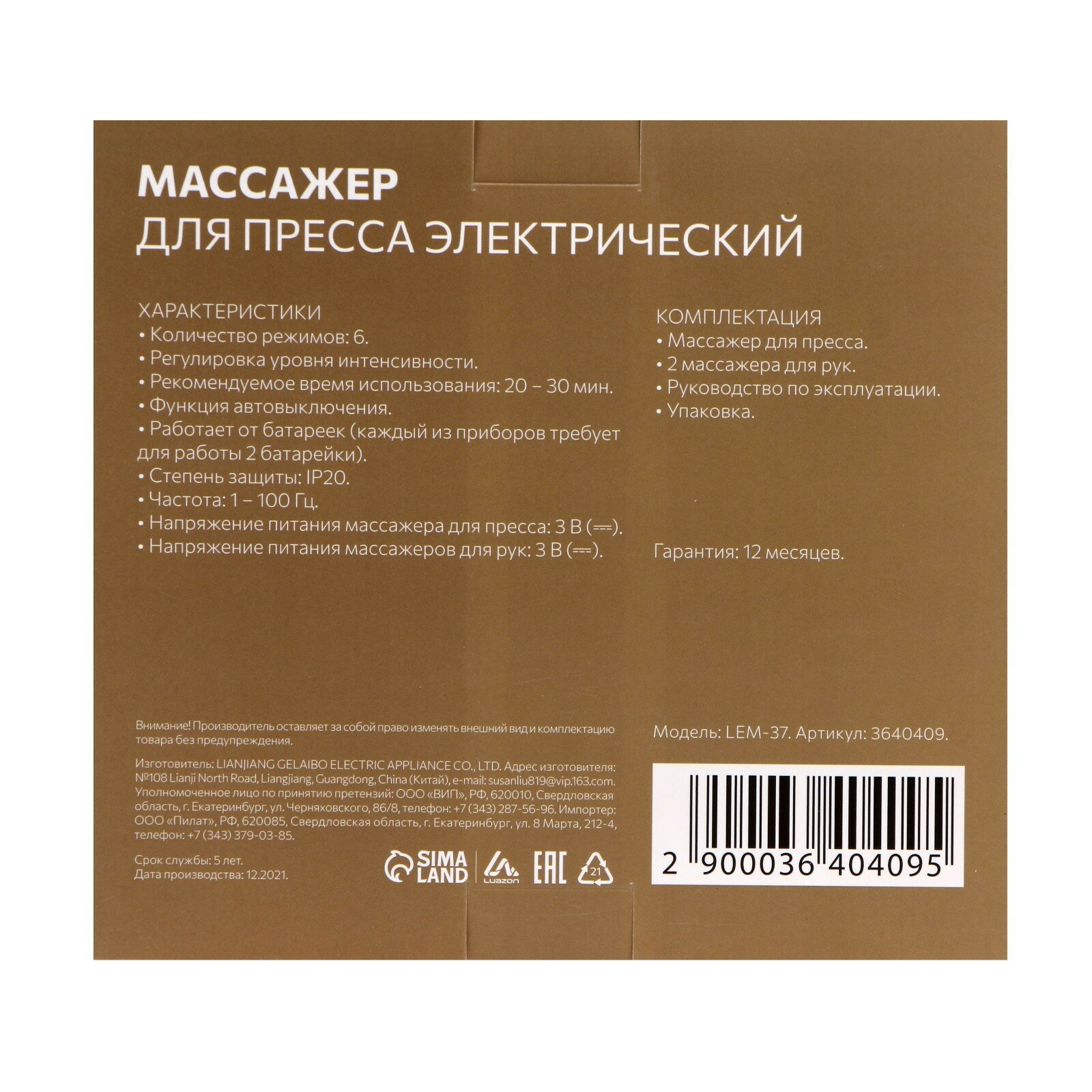 Массажёр для пресса и рук Luazon LEM-37, 6 режимов, 3 пульта, 6хААА