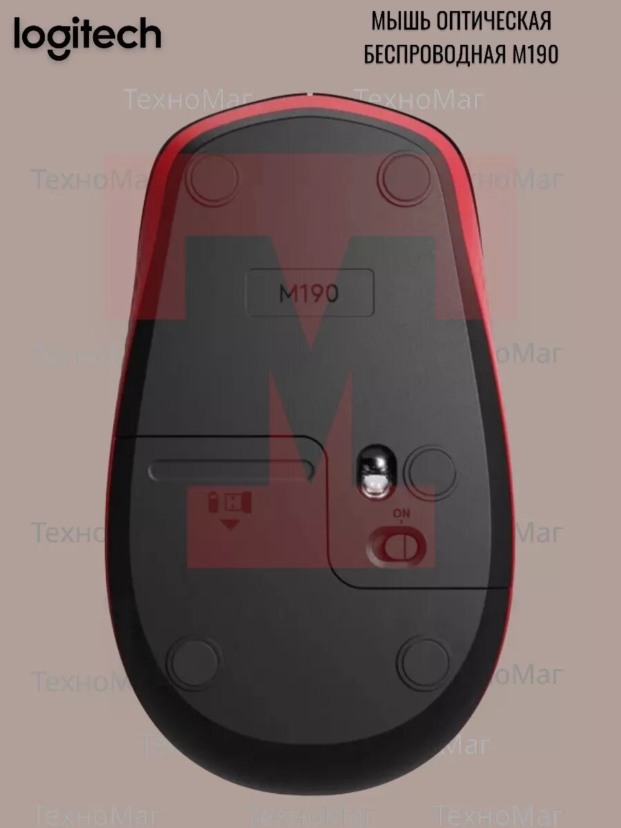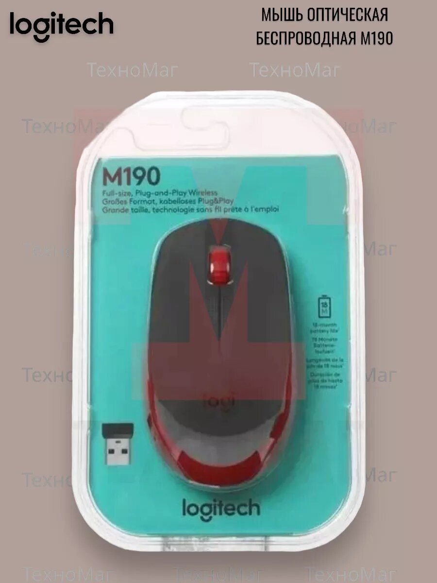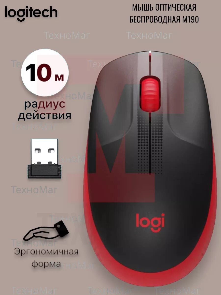 Беспроводная мышь Logitech M190 1000dpi, радиоканал, 90 г, красный / черный 910-005908