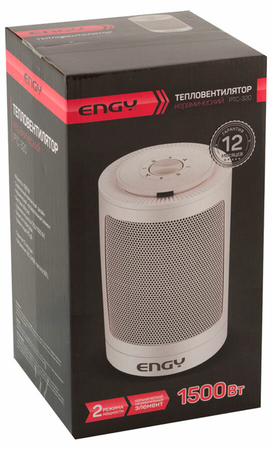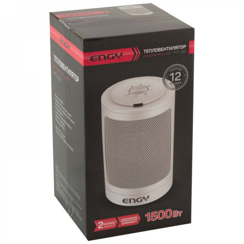 Тепловентилятор ENGY PTC-319, 1500 Вт, керамика, 2 режима, хол.обдув, чёрный