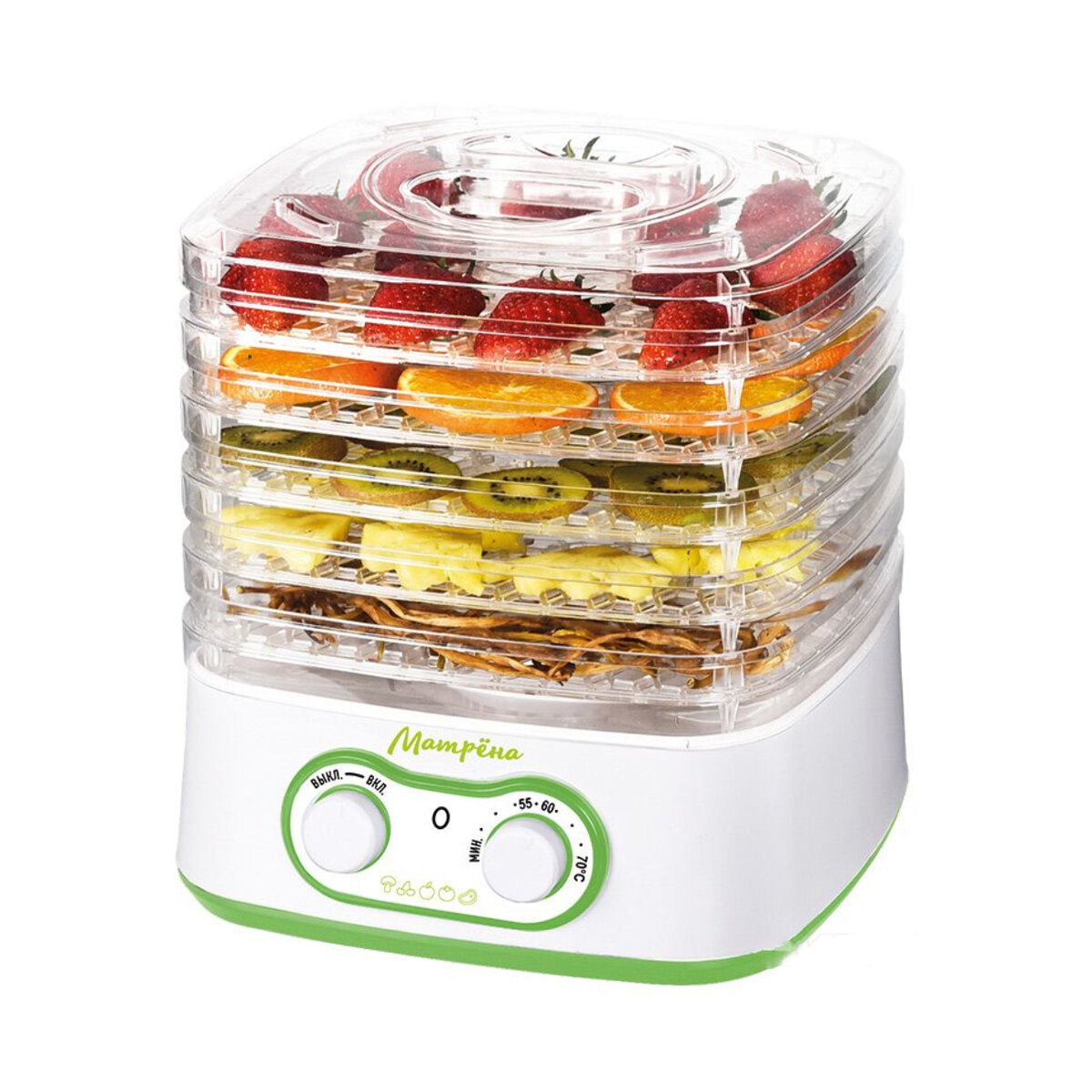 Сушилка для овощей и фруктов матрёна МА-018, 245 Вт, 5 ярусов, бело-зелёная, цвет белый