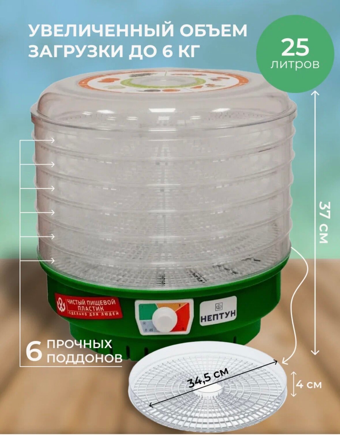 Сушилка для овощей и фруктов Нептун 5-01 кажи.332219.009-01 (6 поддонов)