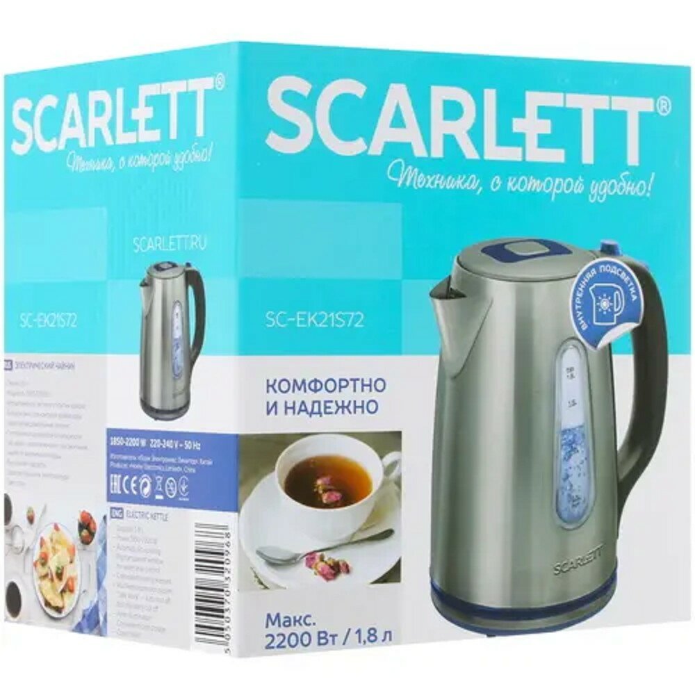 Чайник SCARLETT SC-EK21S72, 2200Вт, 1.8л, сталь, 1971545