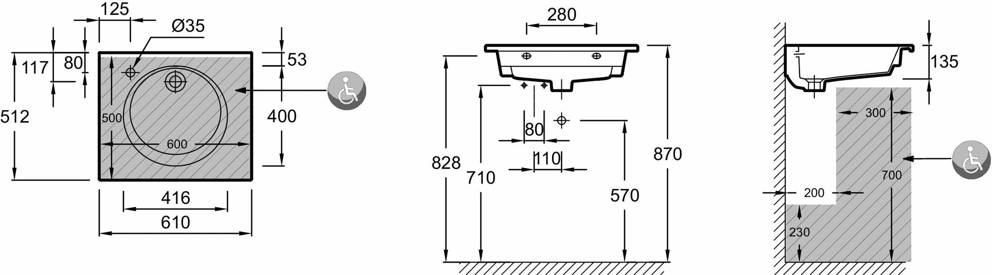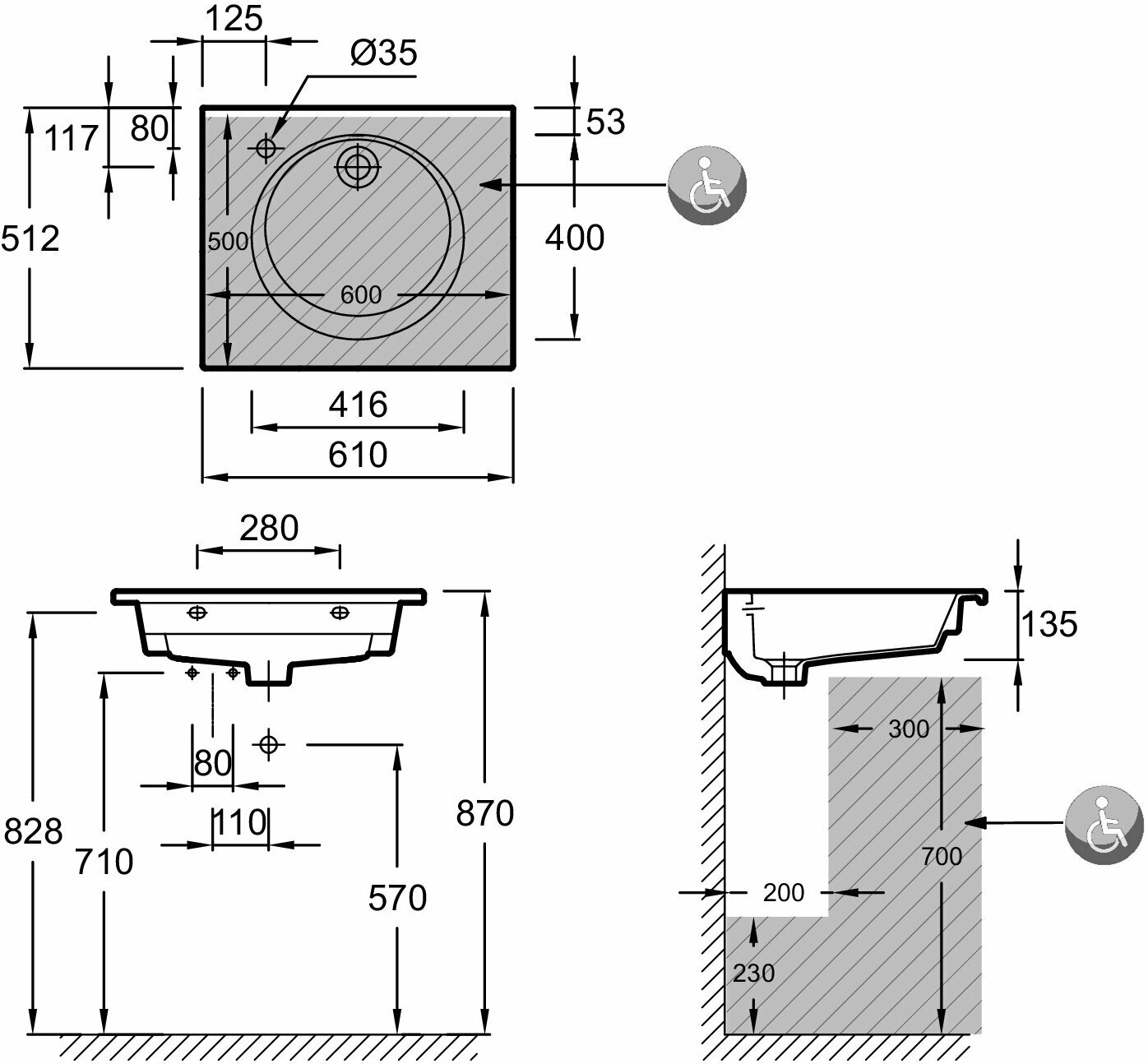 Odeon Rive Gauche 61х51,2см, мебельная раковина, санфарфор, арт. EXBA112-Z-00, Jacob Delafon