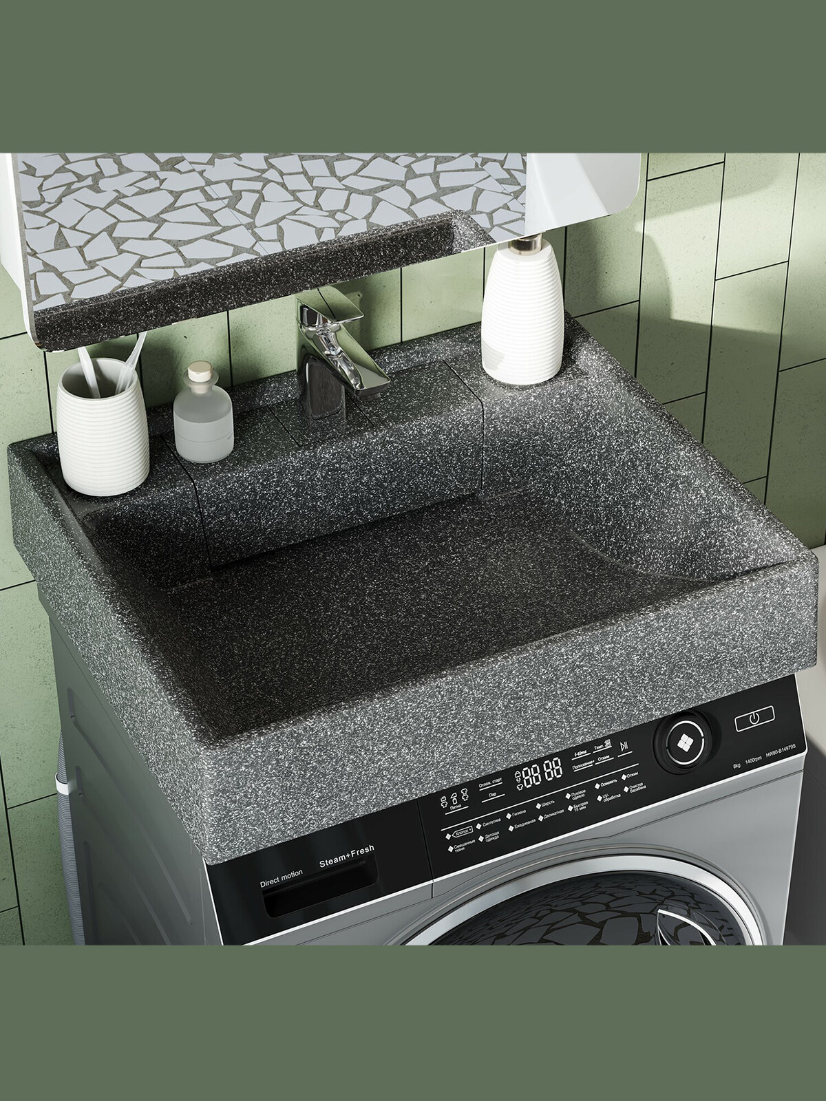 | Плюсы: | экономия места, проста в установке, изготовлена из мрамора |