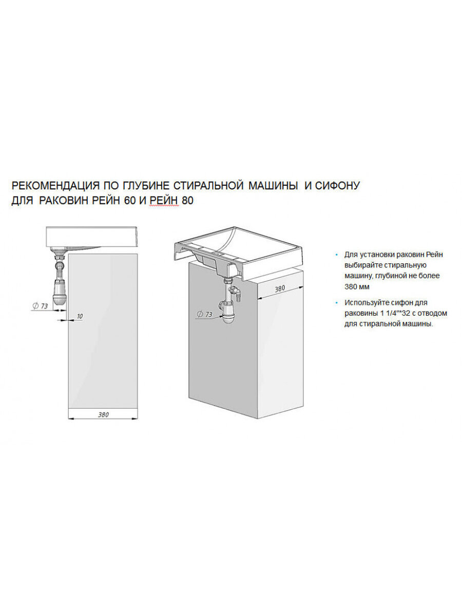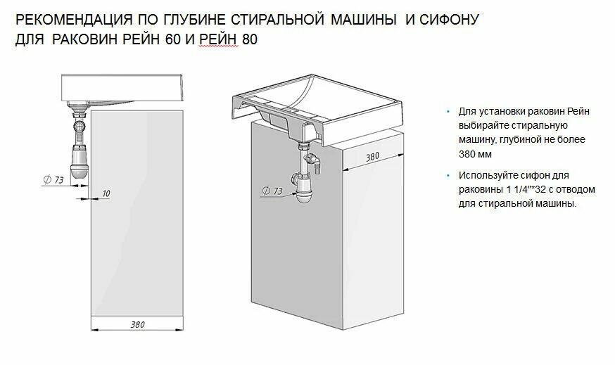 Раковина Акватон Рейн 60 над стиральной машиной