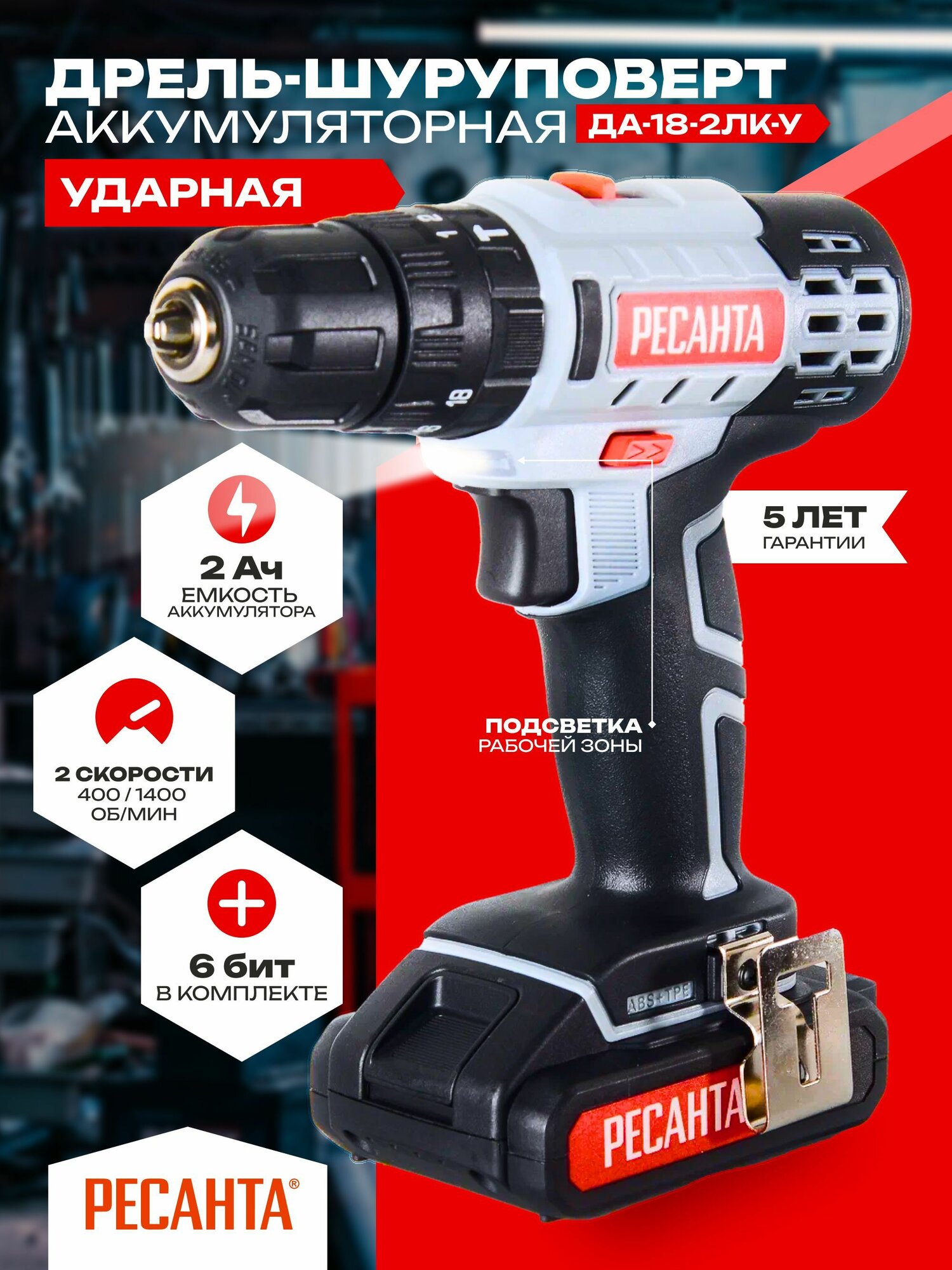Дрель аккумуляторная Шуруповерт РЕСАНТА ДА-18-2ЛК-У