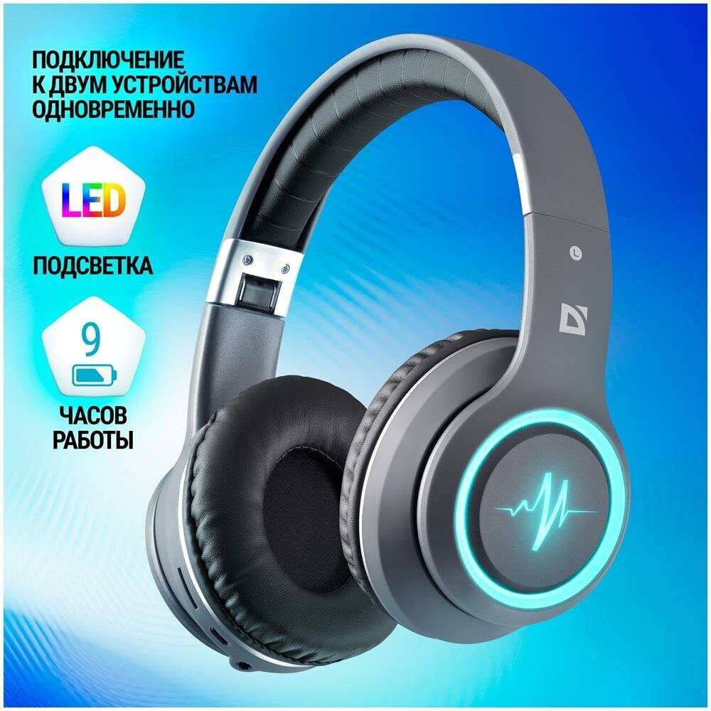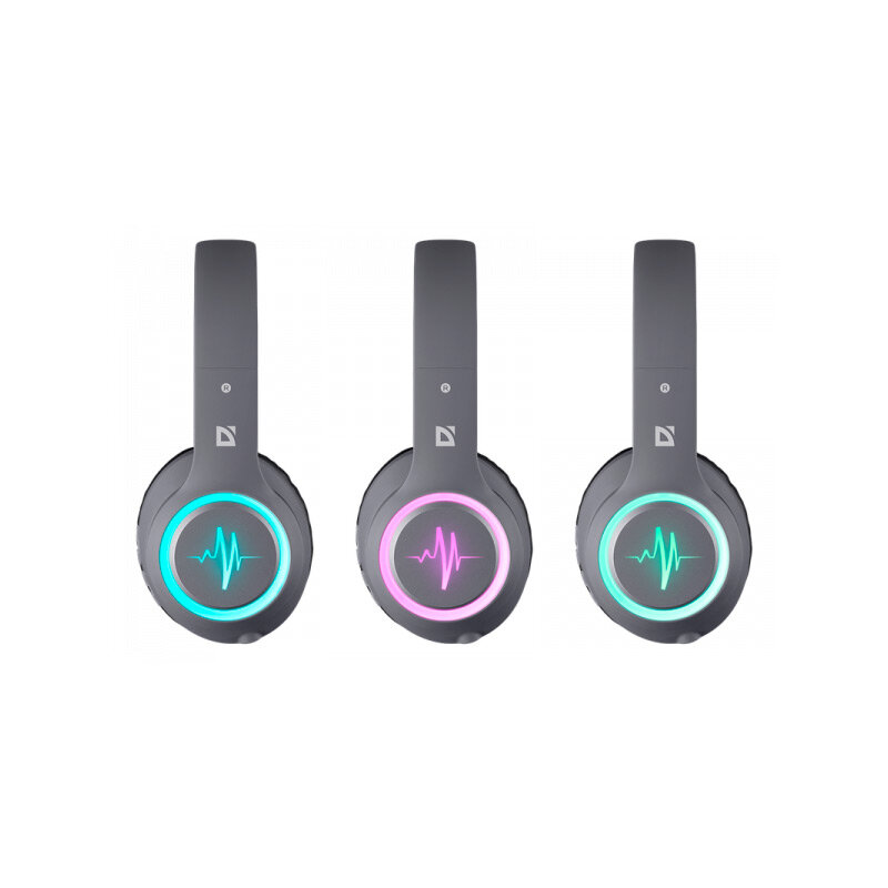 Наушники беспроводные Defender FreeMotion B400 черный, микрофон, LED, BT