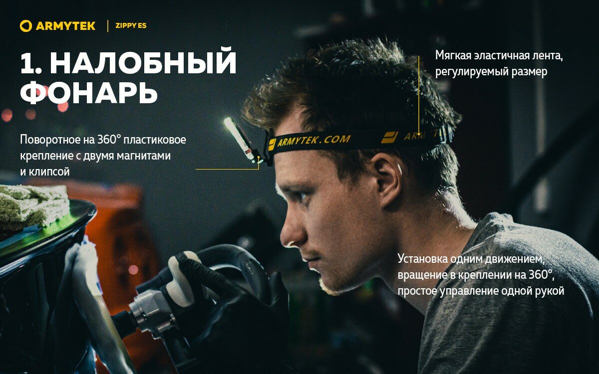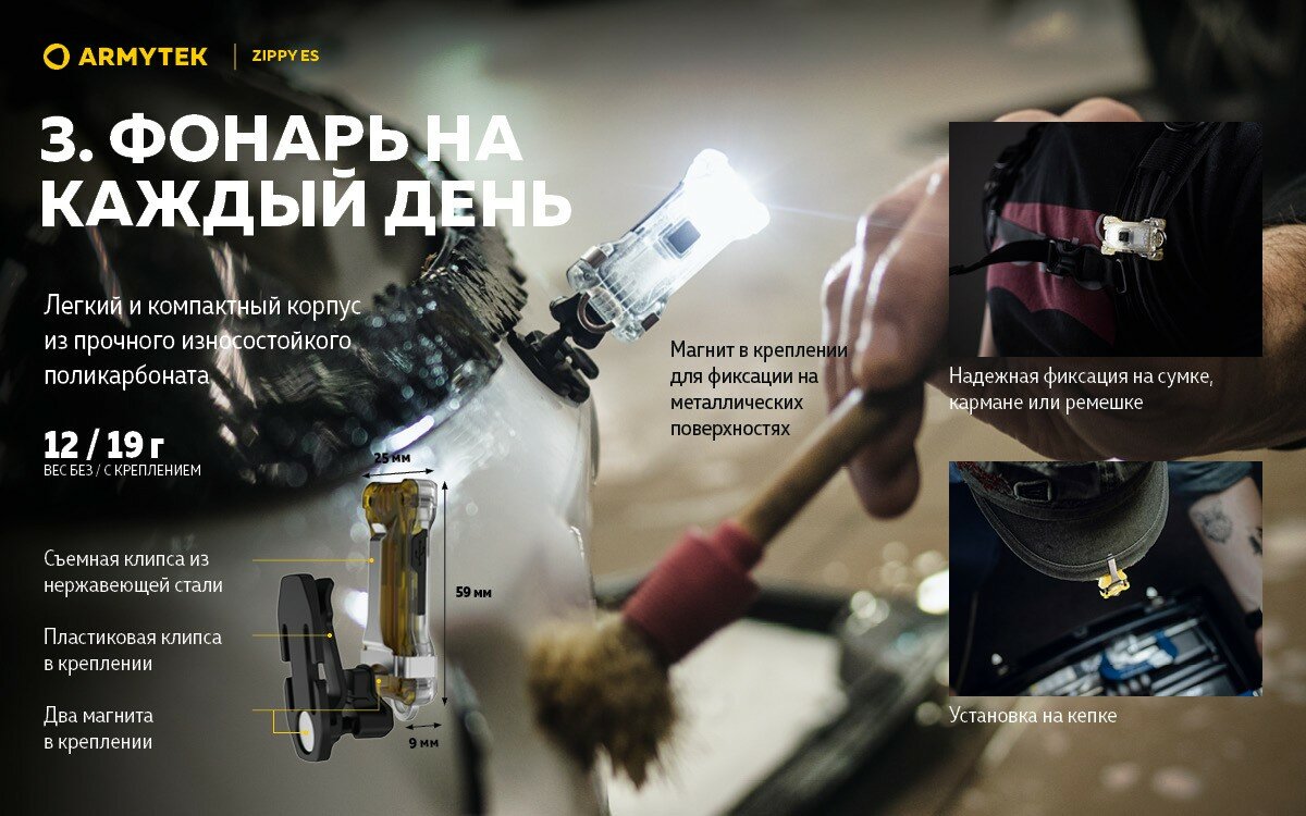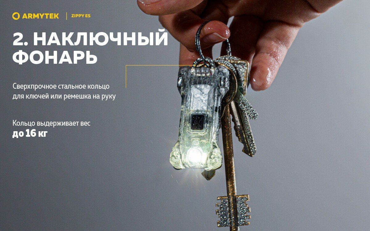 СохранитьФонарик аккумуляторный мульти Armytek Zippy налобный, ручной, на ключи, 160 lm, белый, до 15м, корпус серый интересное: