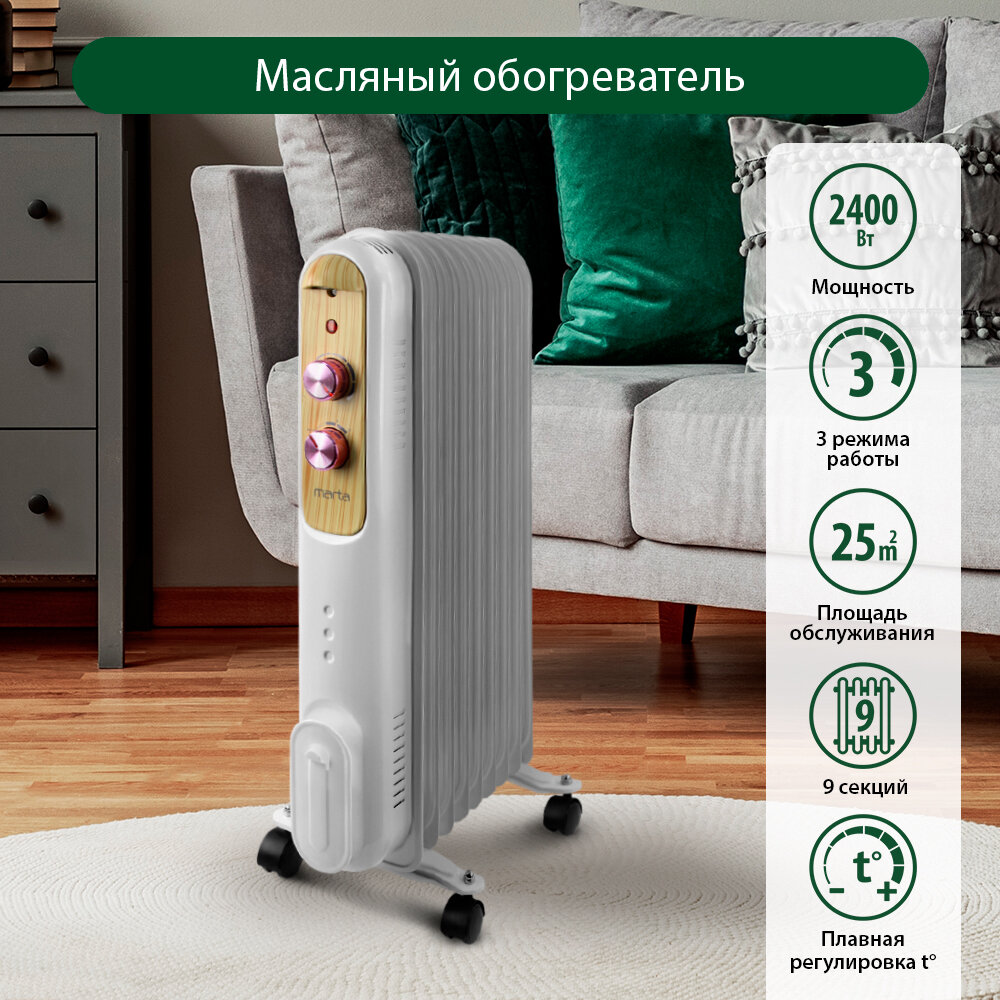 Масляный обогреватель для дома, 9 секций, 2400 ВТ интересное: