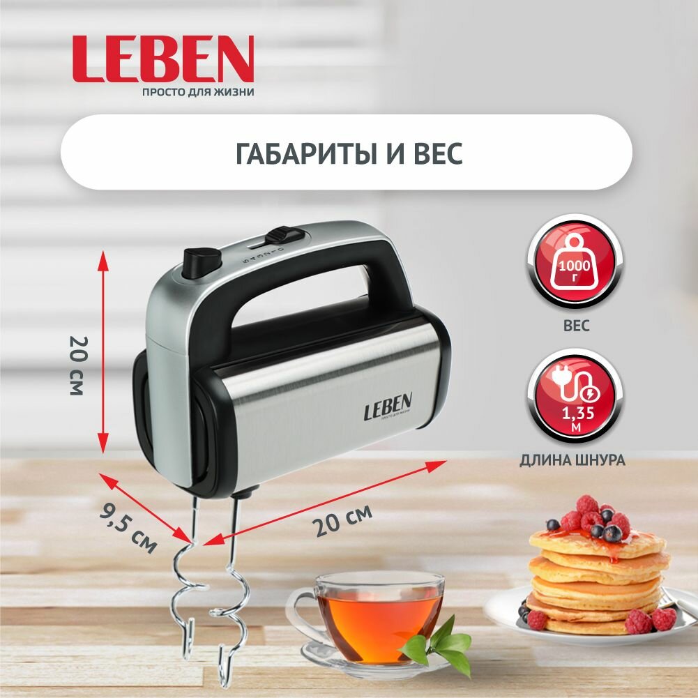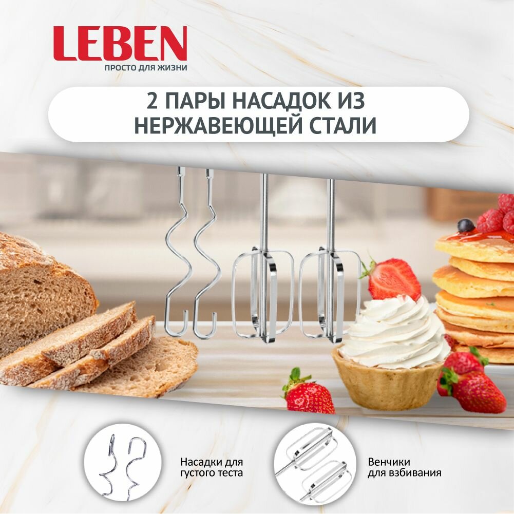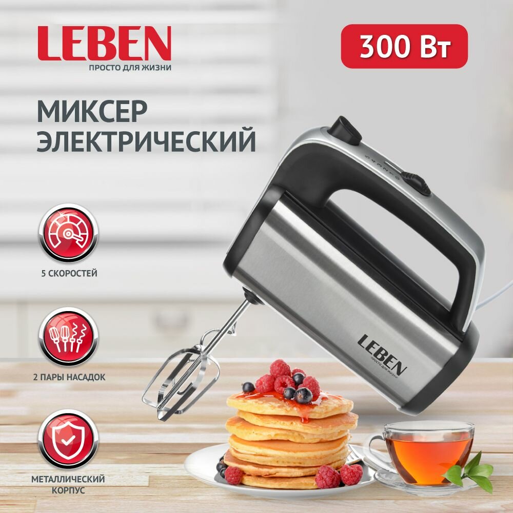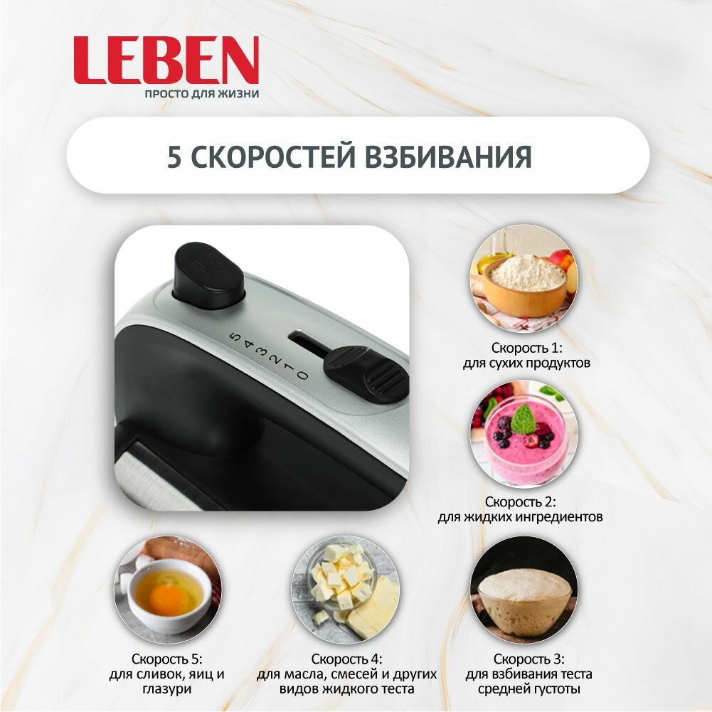 Миксер кухонный электрический LEBEN 300 Вт, 5 скоростей, корпус металл интересное: