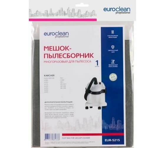 Пылесборник EUROCLEAN EUR-5215 многоразовый с застежкой, для KARCHER упак. 1 шт. / мешки для пылесоса