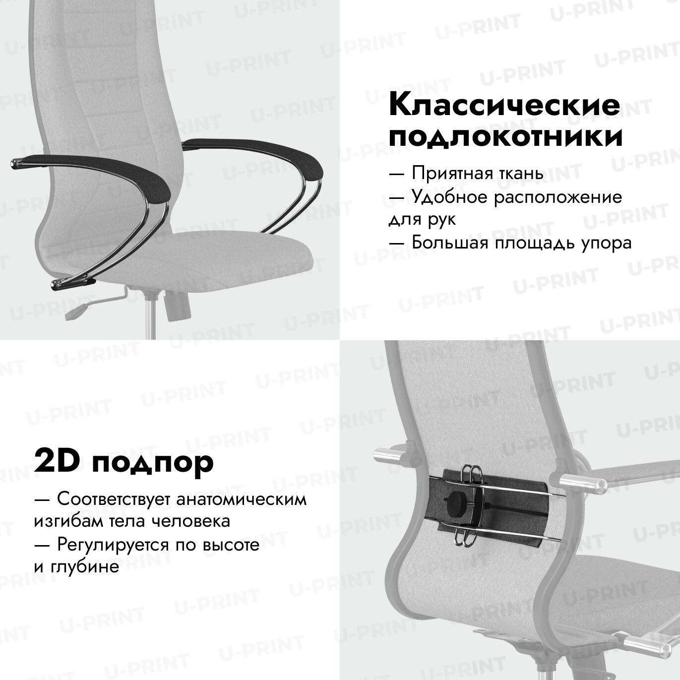 Кресло руководителя Метта L 1m 42 Bravo/подл.118/осн.003 Велюр B Светло-серый