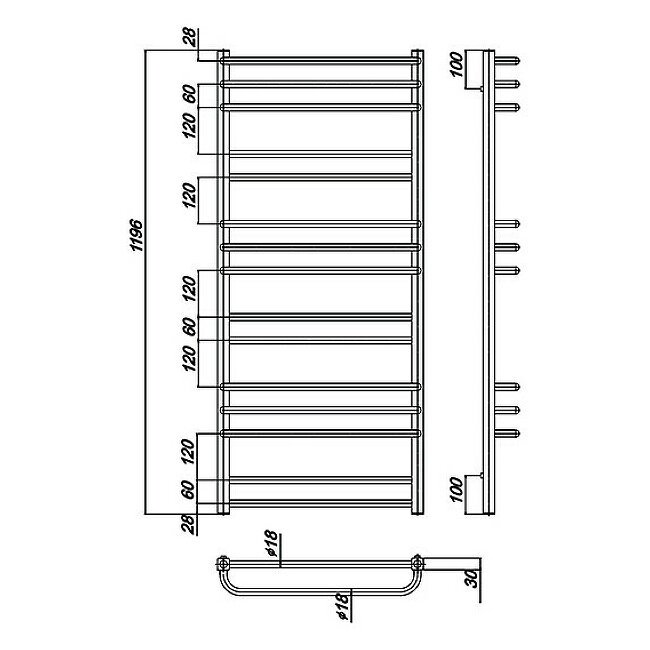 Полотенцесушитель водяной Ravak Cube 500 x 1200_W