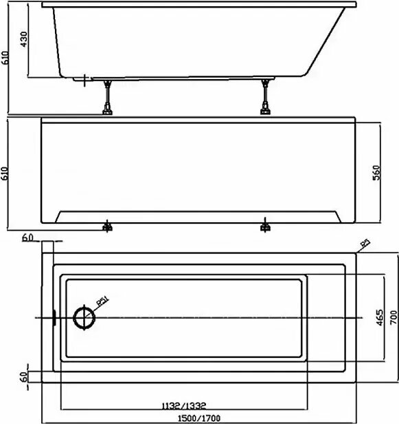 Ванна София прямоугольная 150*70 см SOF150-0000001