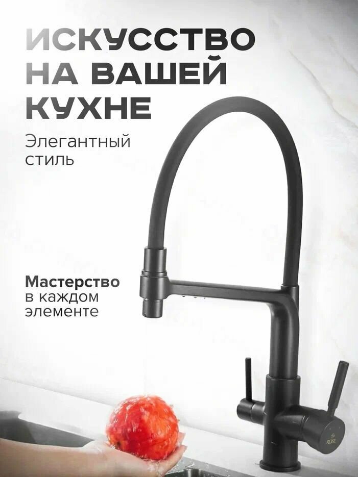 СохранитьСмесители для кухни с гибким изливом и подключением фильтра ROSE R658Н (латунь, цвет черный) интересное:
