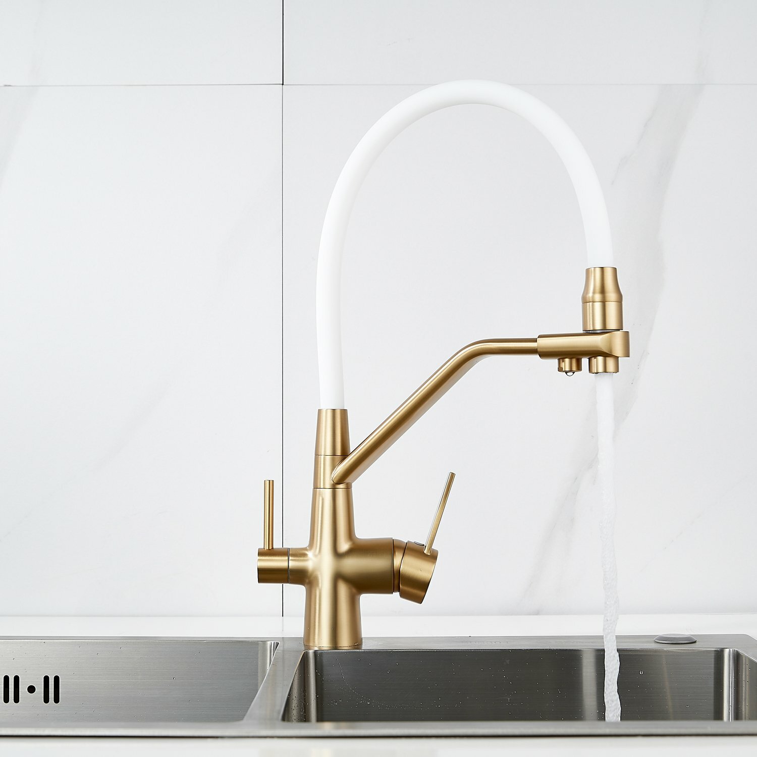 Смеситель для кухни с гибким изливом и подключением фильтра для воды Rose R558E, золото