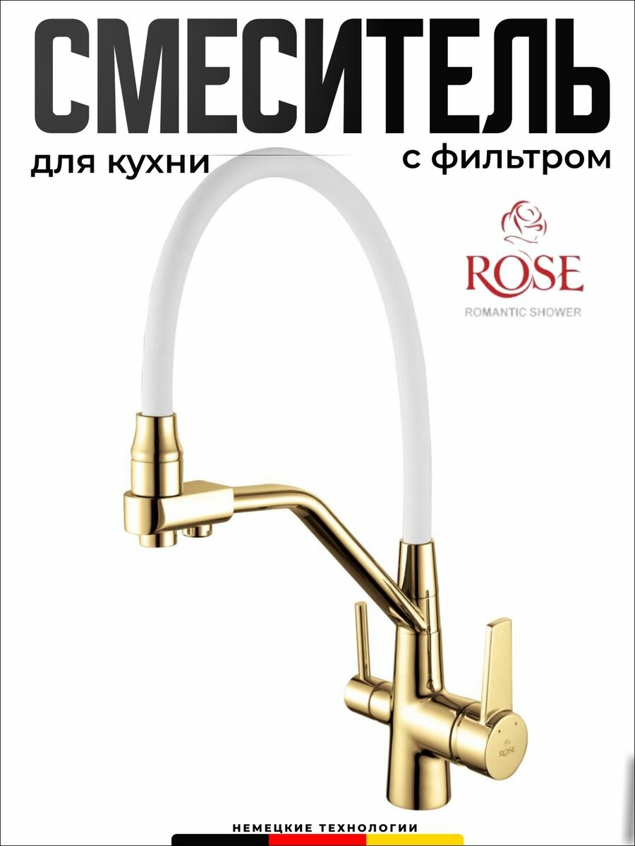 СохранитьСмесители для кухни с гибким изливом и подключением фильтра ROSE R558Е (латунь, цвет золото) интересное: