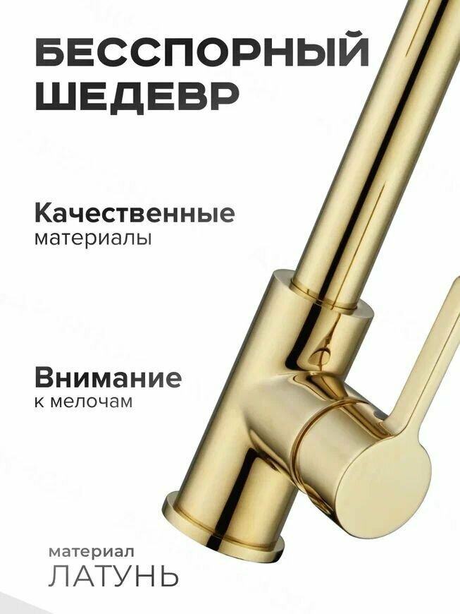Смеситель для кухни с гибким изливом и подключением фильтра для воды Rose R558E, золото
