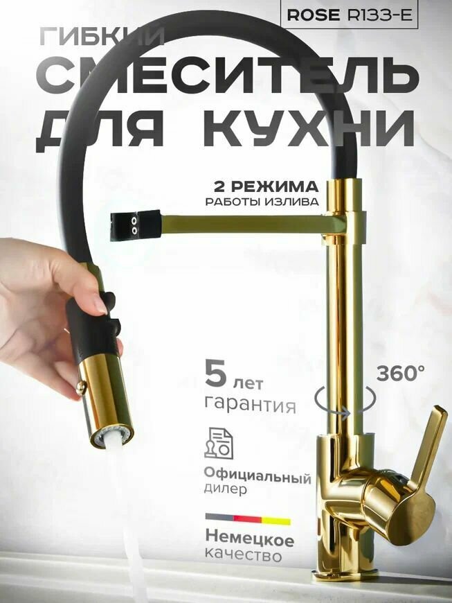 СохранитьСмеситель для кухни с гибким изливом ROSE R133E, латунь, цвет золото интересное: