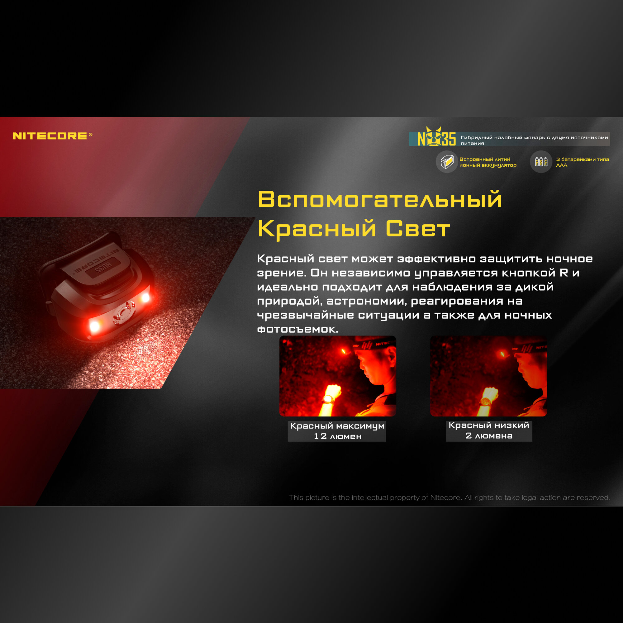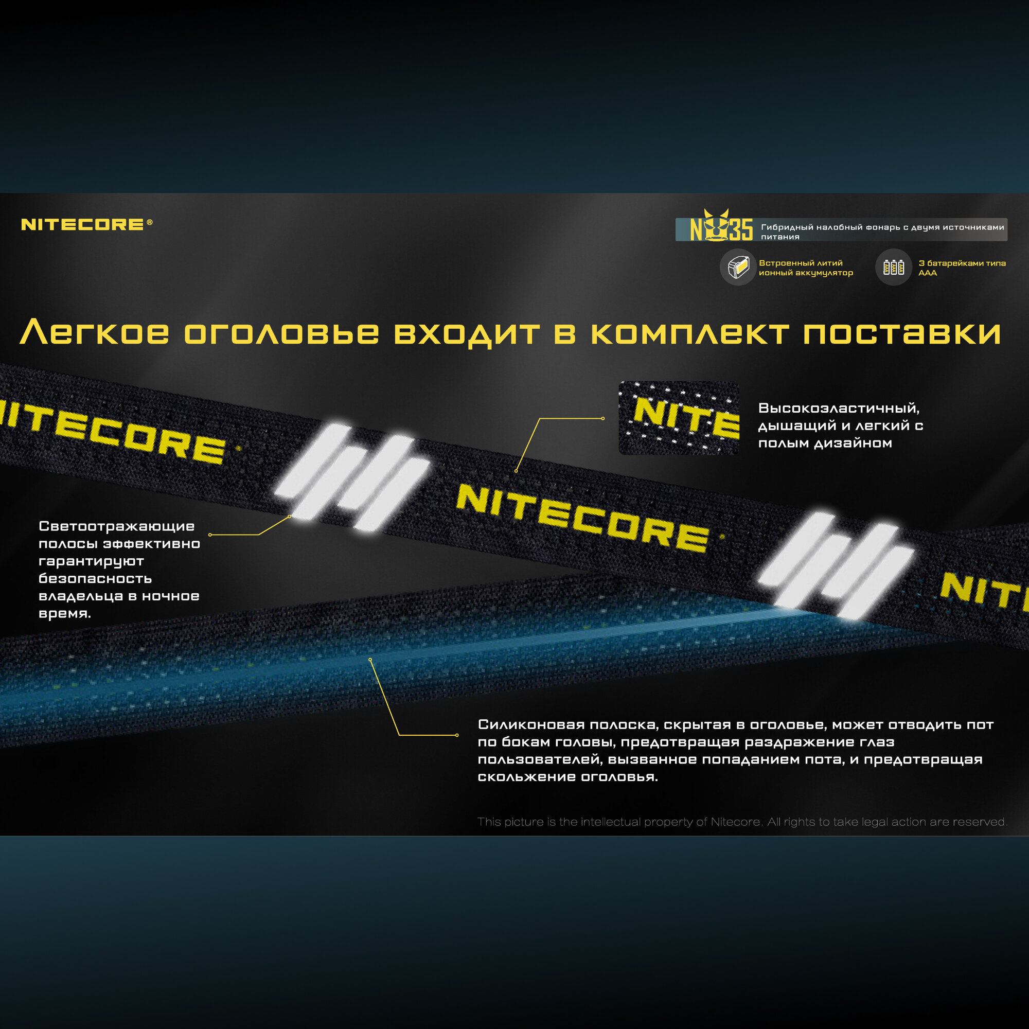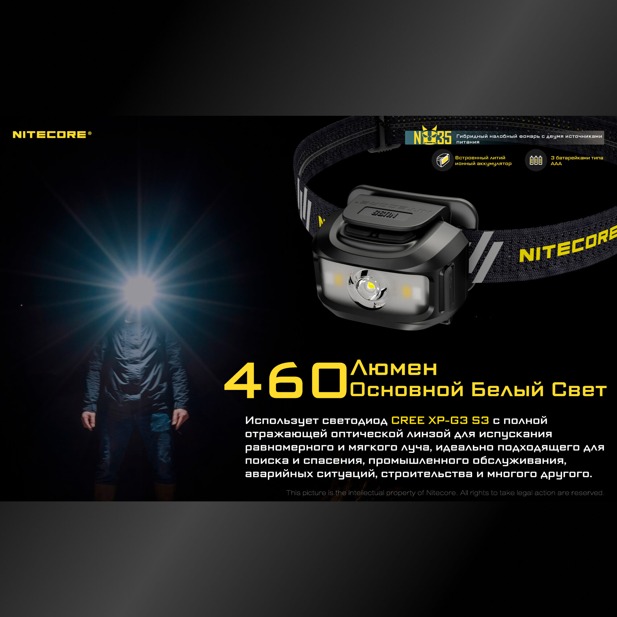 Купить Ультралегкий налобный фонарь NITECORE NU35 CREE может работать от аккумулятора или от батарейки
