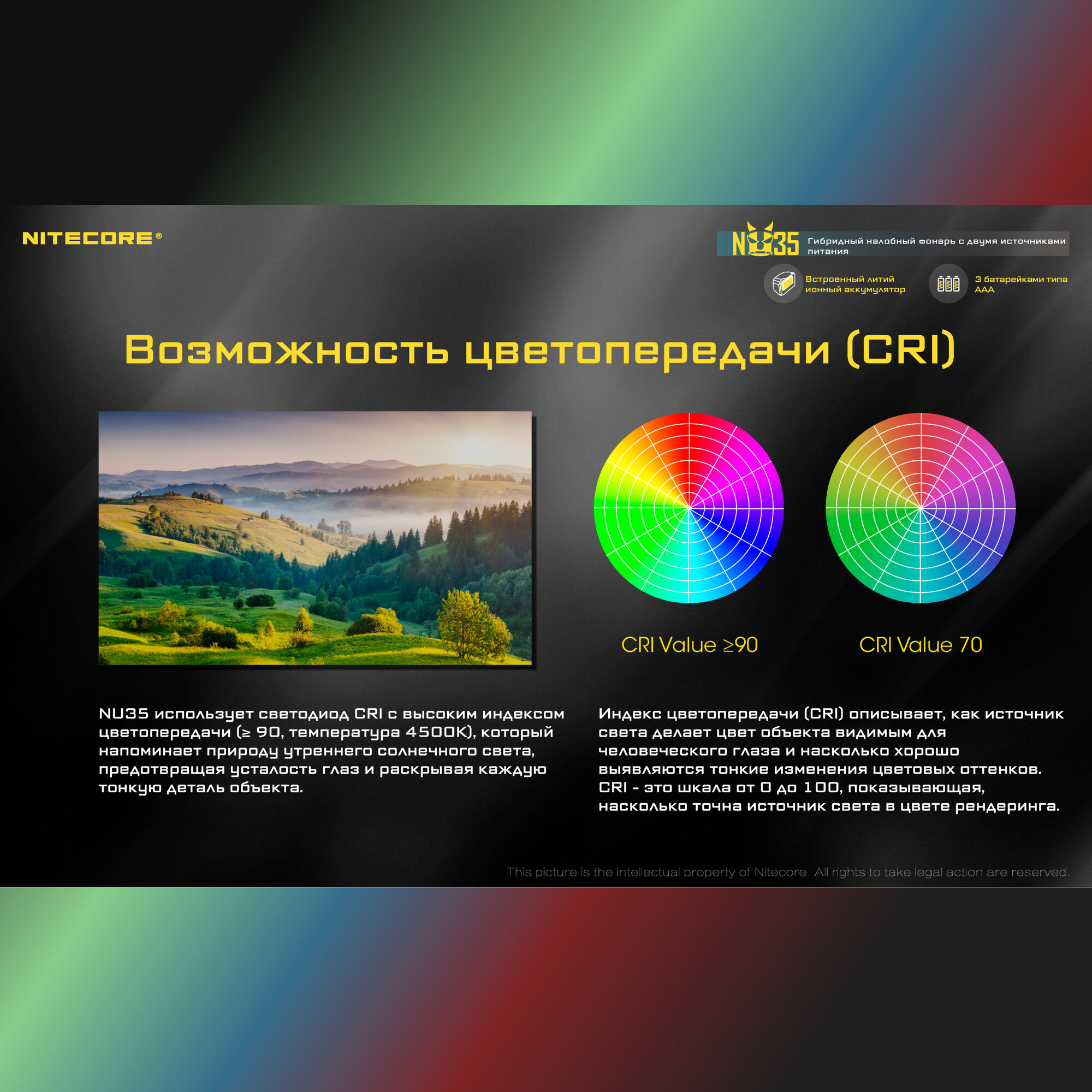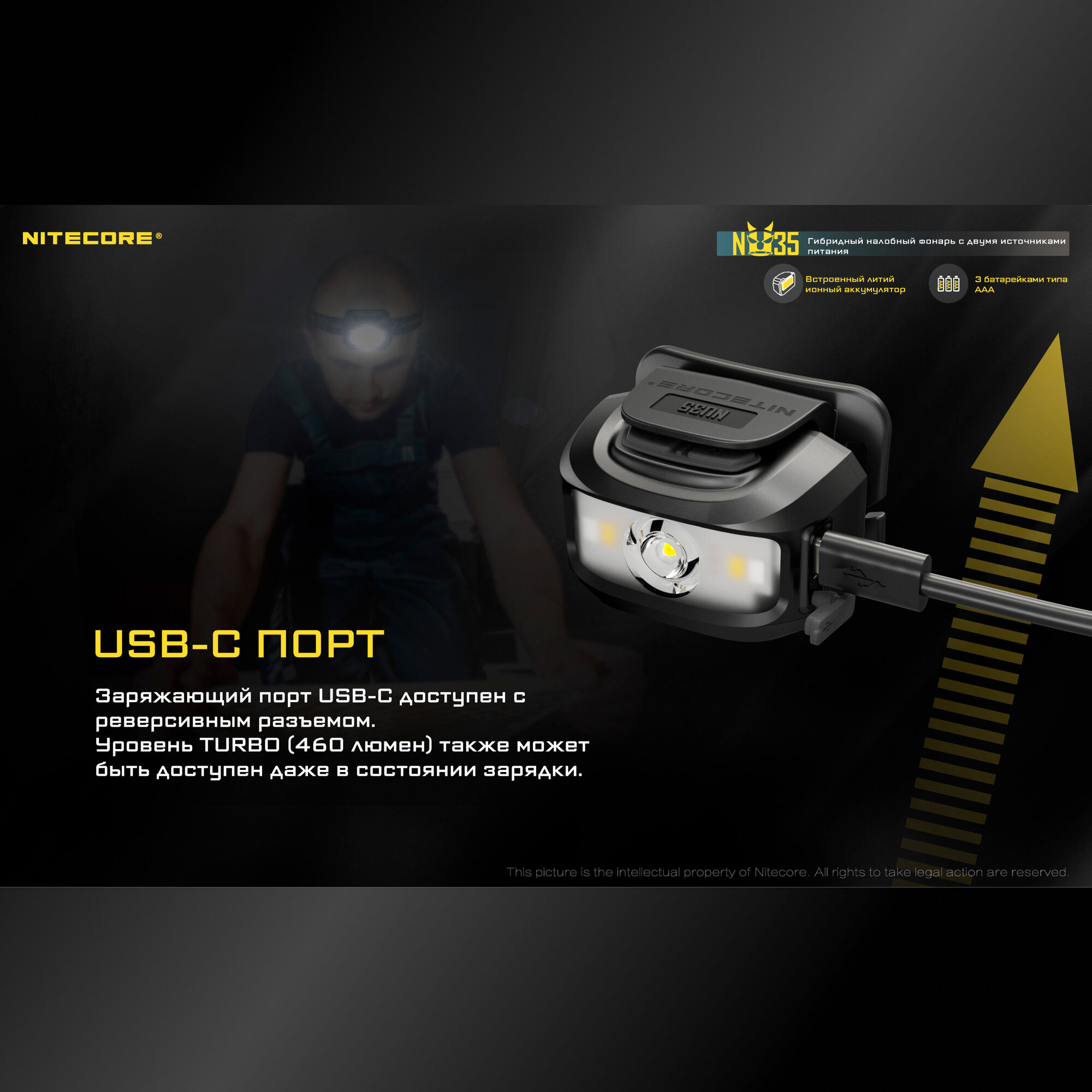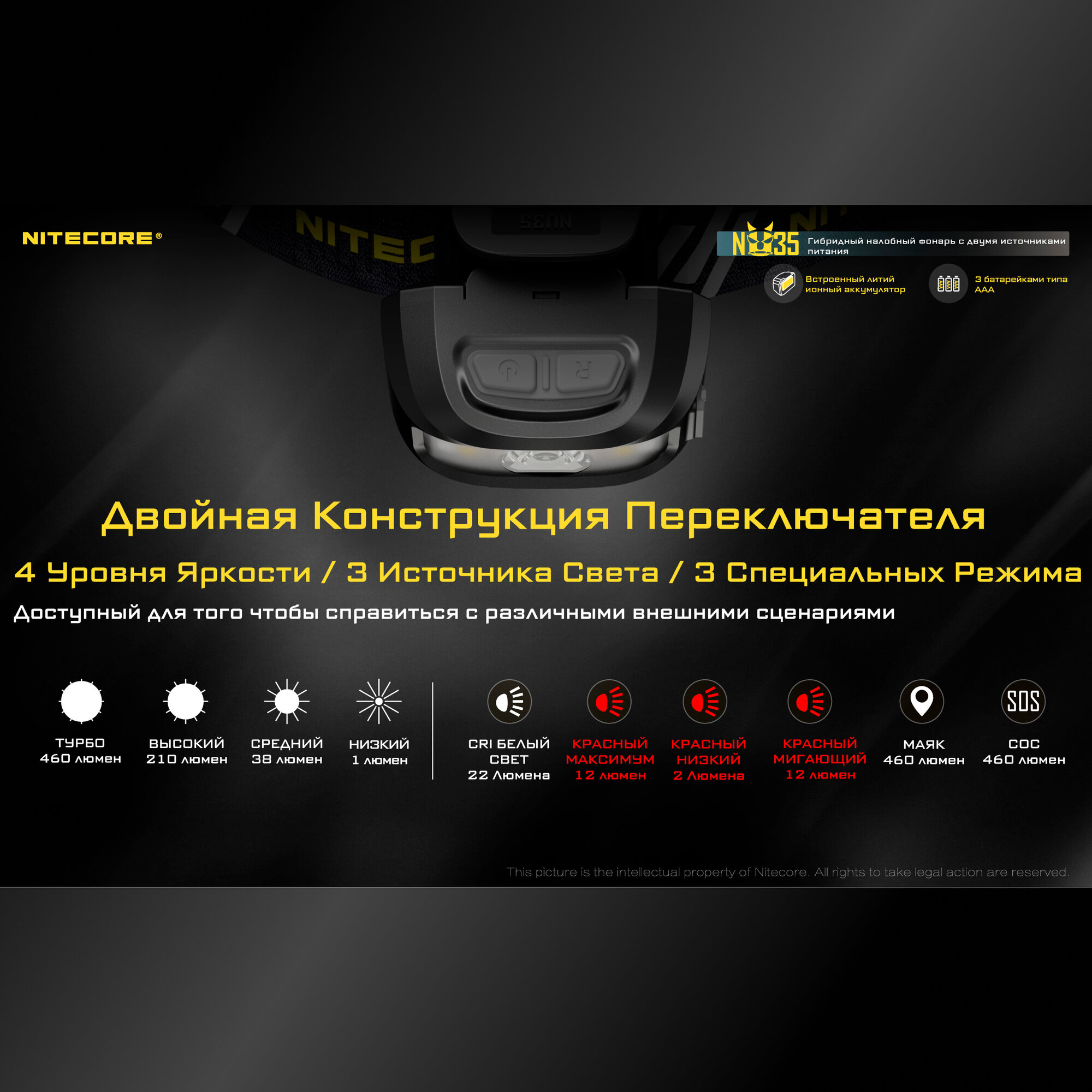 Купить Ультралегкий налобный фонарь NITECORE NU35 CREE может работать от аккумулятора или от батарейки