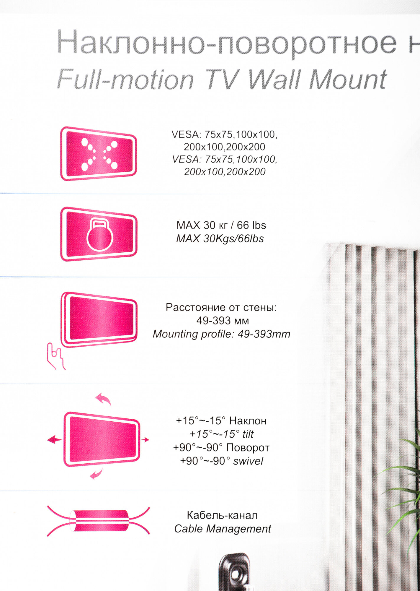 | Отзыв: | Отличный кронштейн для телевизоров с возможностью поворота |