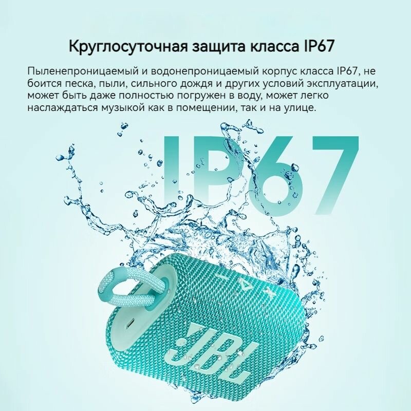 JBL GO 3 портативная А/С: 4,2W RMS, BT 5.1, до 5 часов, 0,21 кг, цвет бирюзовый