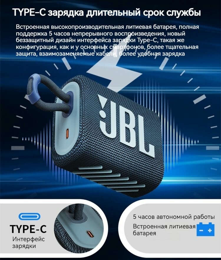 Портативная колонка JBL Go 3 ,4.2 В Синий