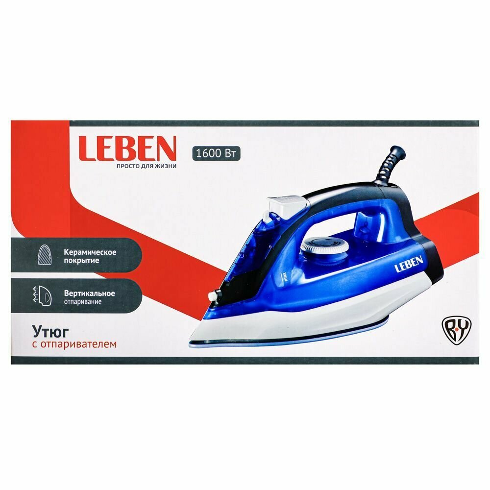Ниже Вы можете прочитать отзывы на LEBEN Утюг с отпаривателем 1600 Вт, подошва - керамическое покрытие, синий, ознакомится с подробными характеристиками, посмотреть интересные обзоры и фотографии на LEBEN Утюг с отпаривателем 1600 Вт, подошва - керамическое покрытие, синий.