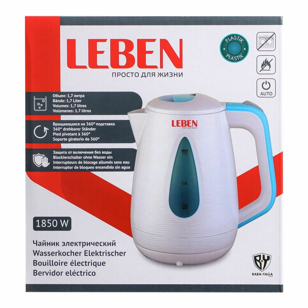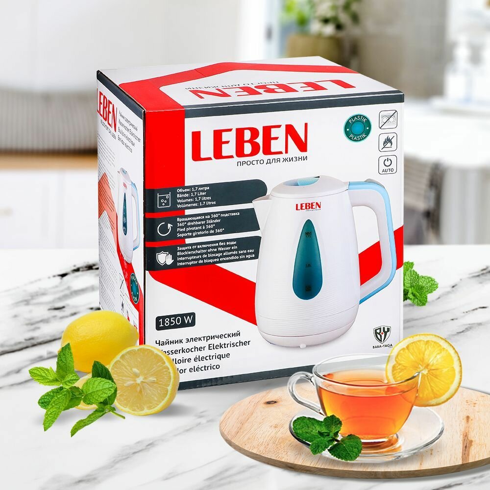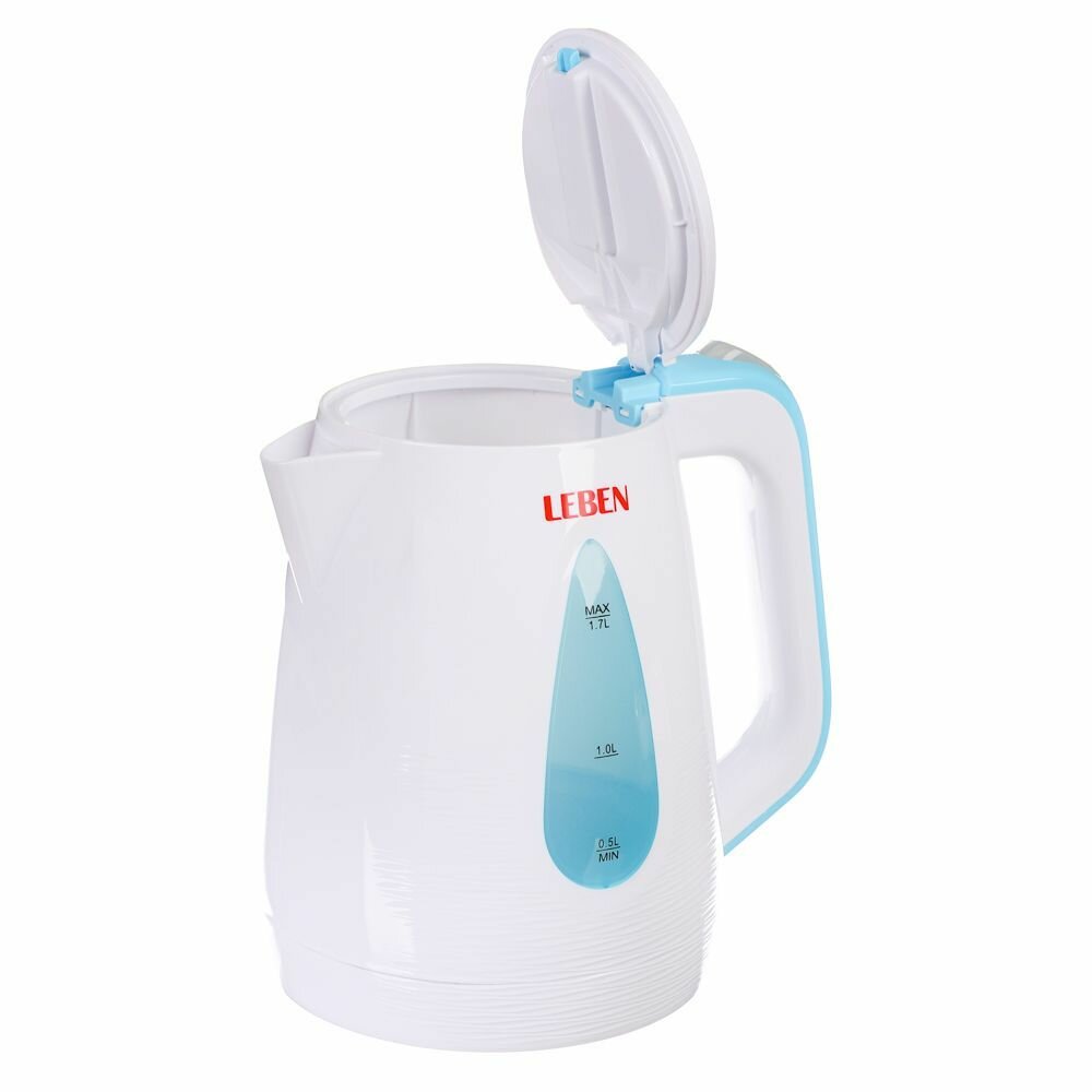 Купить Чайник электрический 1, 7 л LEBEN, 1850 Вт, скрытый нагревательный элемент, пластик, белый/бирюзовый