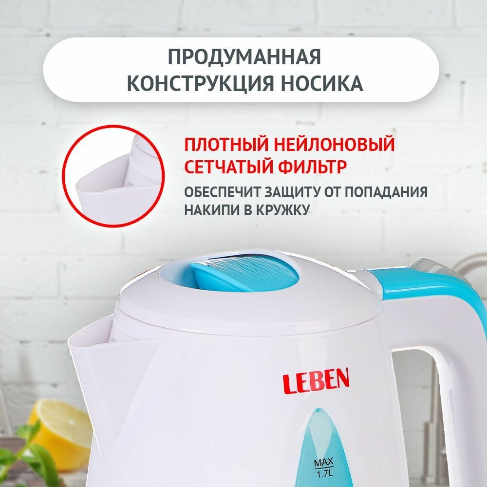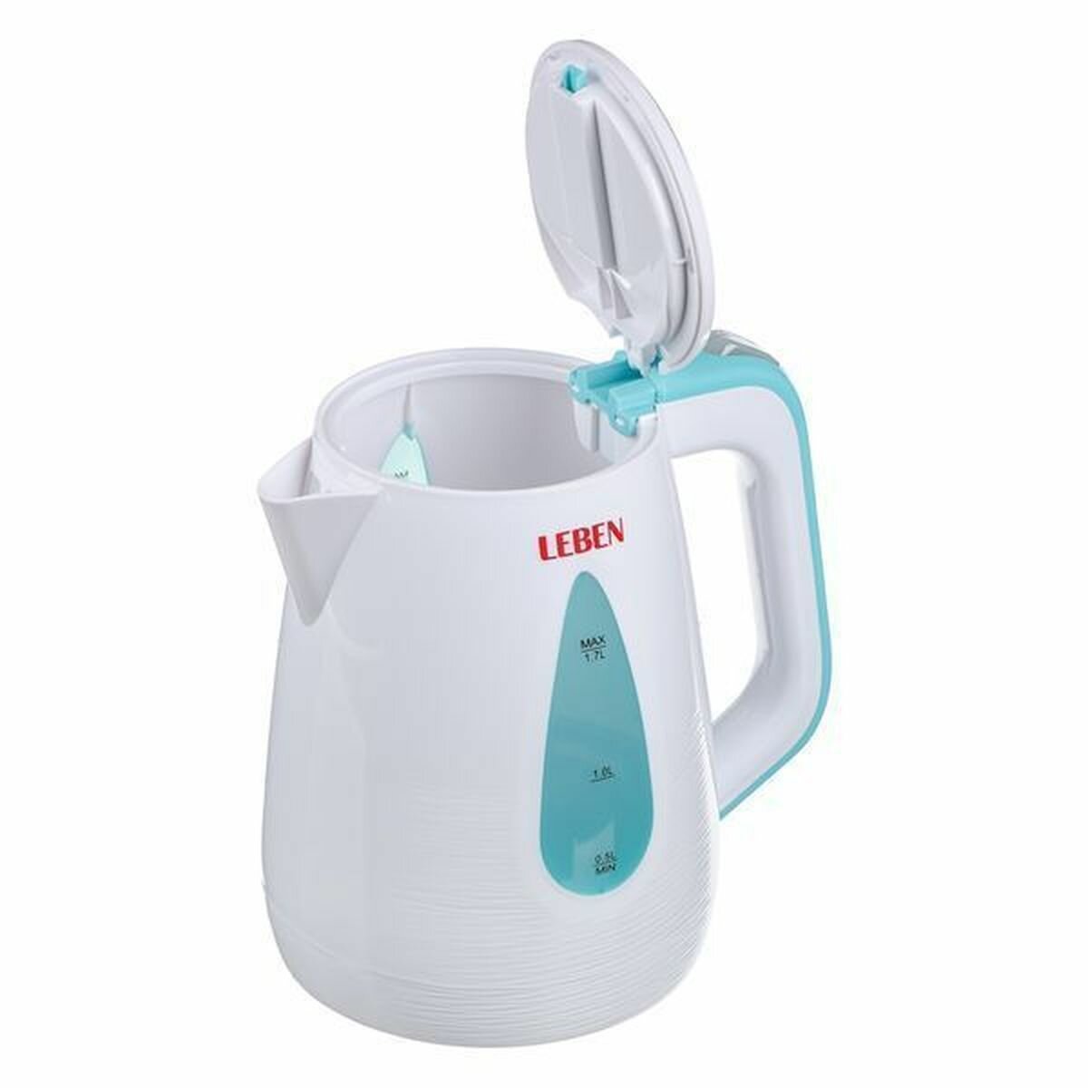 Чайник электрический 1,7 л LEBEN, 1850 Вт, пластик, белый/бирюзовый 291-010