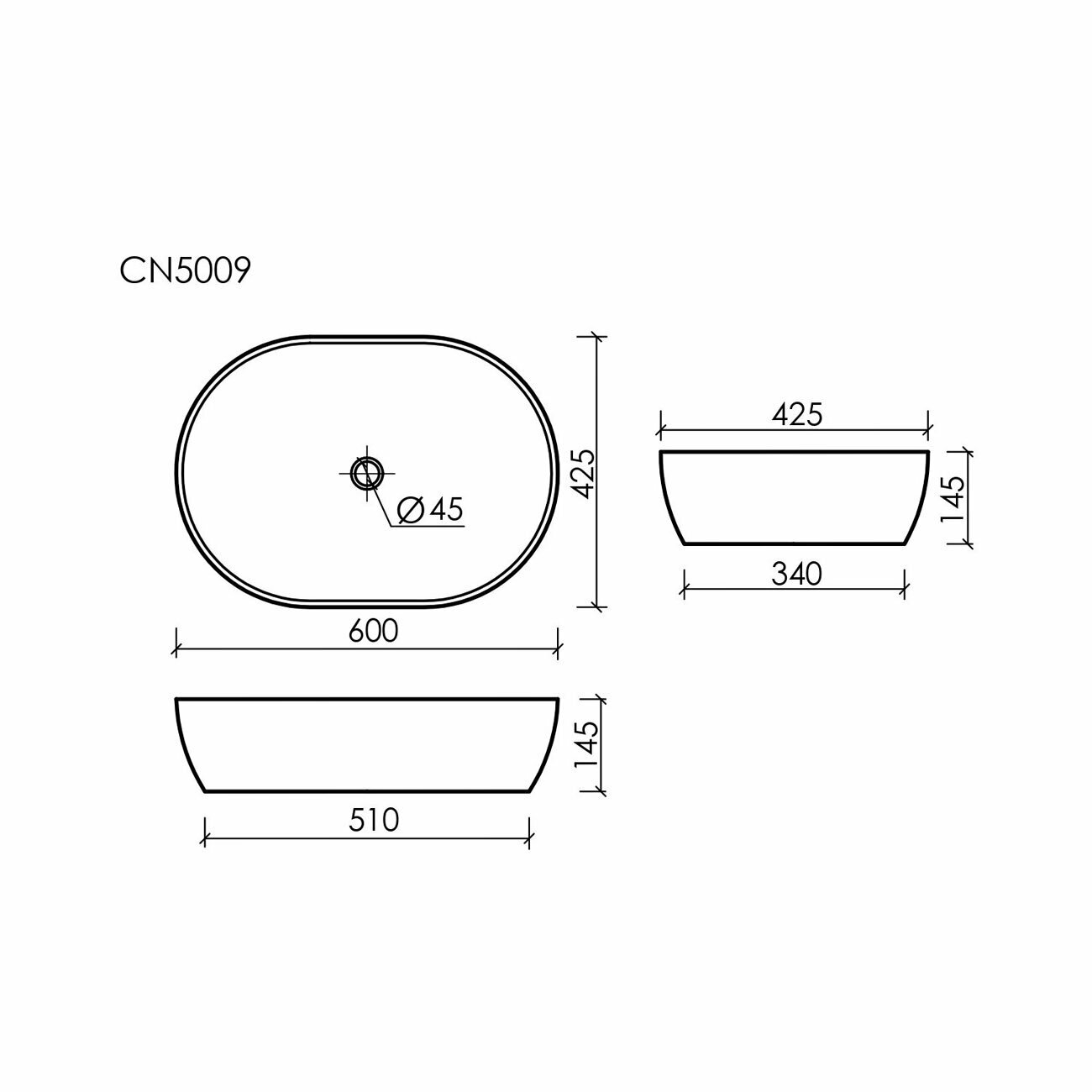 Раковина накладная овальная 60х41,5х13,5 CERAMICA NOVA ELEMENT CN5009