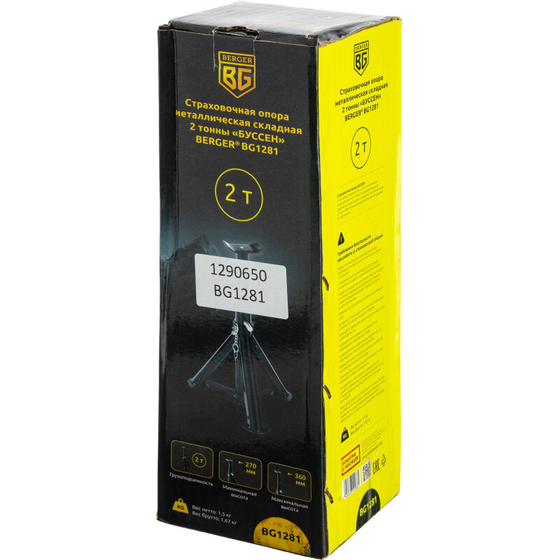 Опора страховочная BERGER BG1281, металлическая, складная, до 2 т,высота от 270 до 360 мм